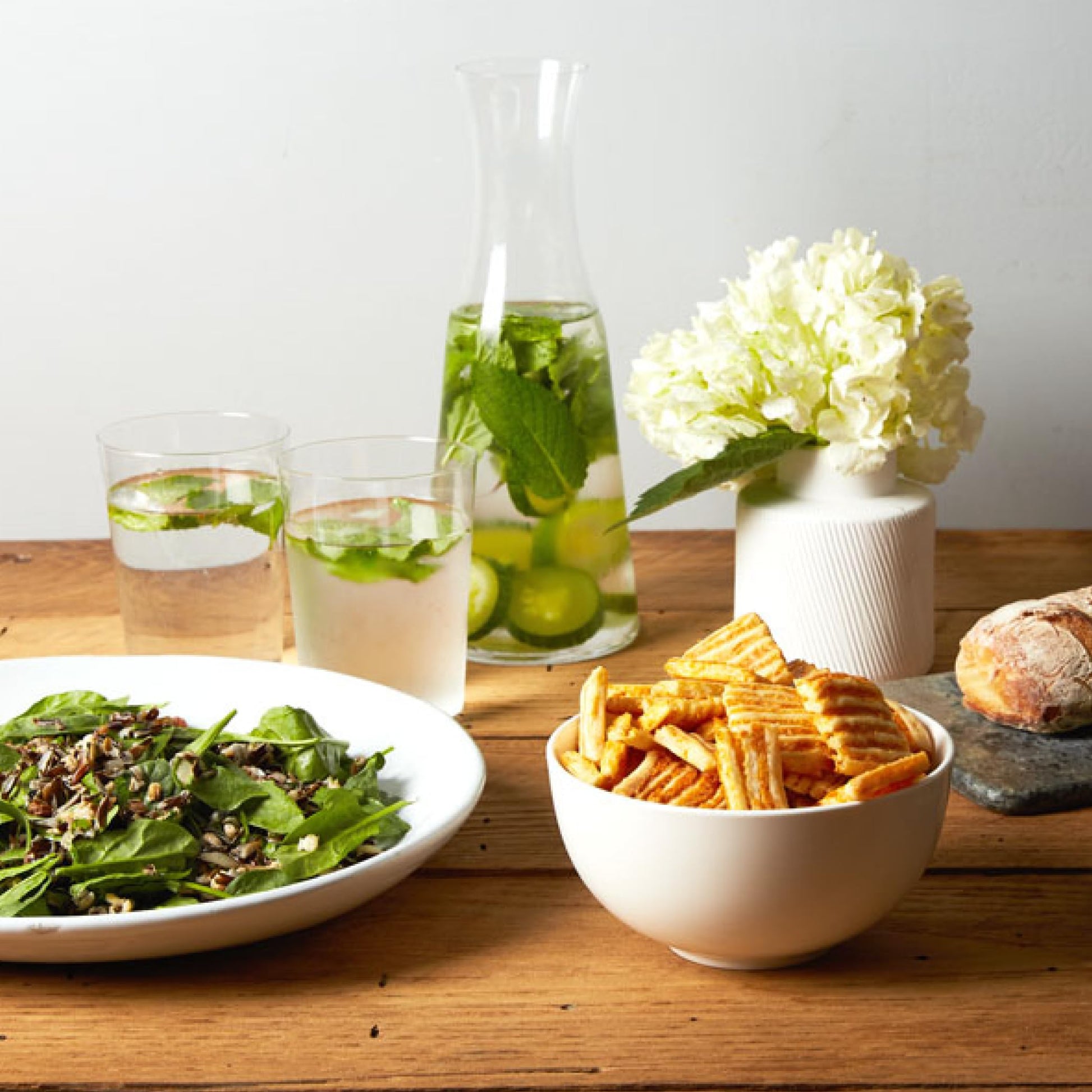 Our best-selling CheeseCrisps. These yummy bite-sized squares are crafted from multiple layers of 100% real aged Asiago & Cheddar cheeses and fresh sourdough, seasoned with cayenne butter and baked twice for the perfect crunch!