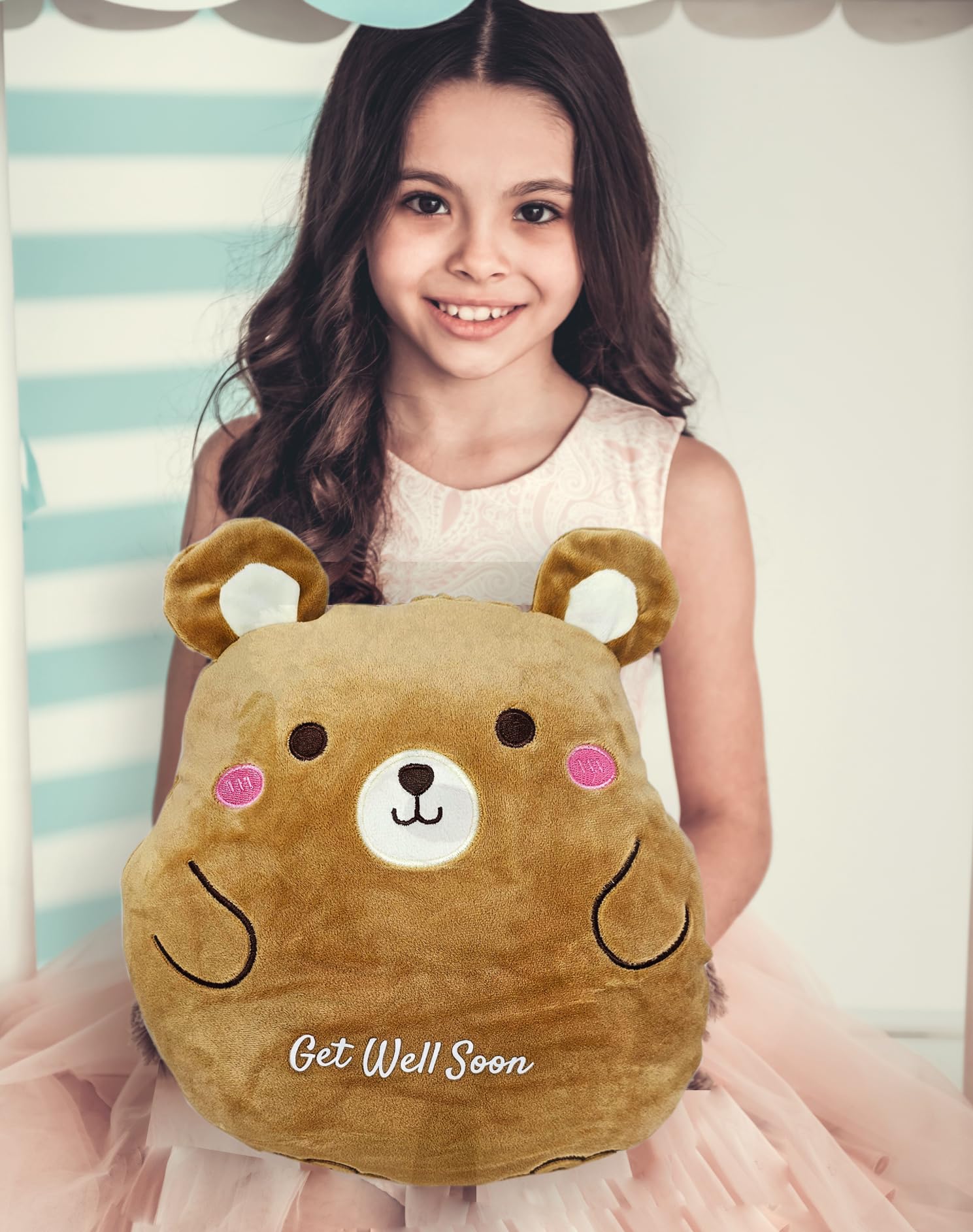 KIDS GET WELL SOON care package gift, Squooshy pillow, Cozy Blanket, Candy Snacks gift basket & Greeting card, gift for kids chi