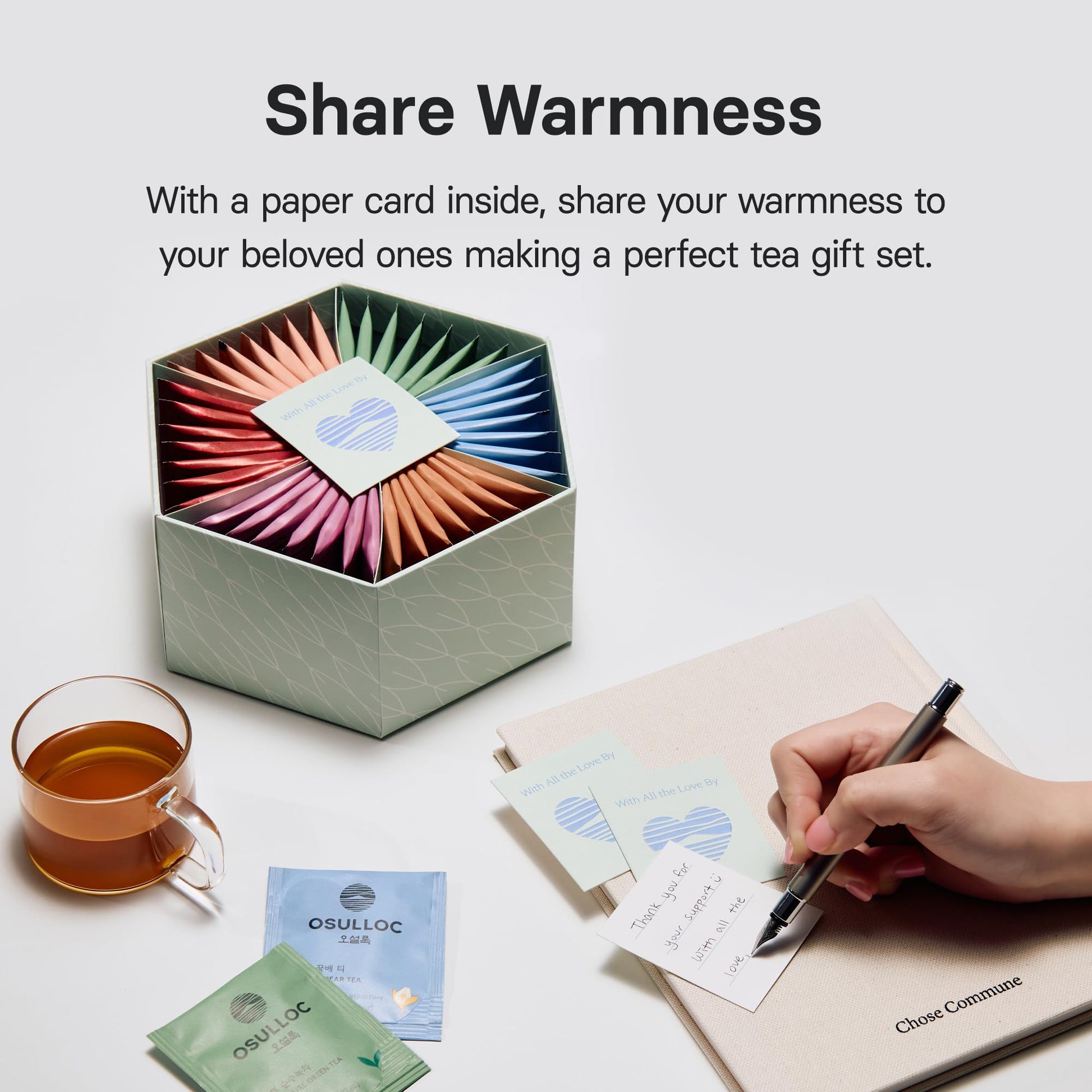 Assorted Hexagon Object Tea Bag Set Enhancing The Value Of A Gift, Tea Bag Gift Set With 42 Counts (6 Type X 7Ea) Perfect Tea Gift Set ''With All The Love By'' Osulloc, Attached With A Special Thank You Card To Show Gratefulness To Your Beloved Ones.