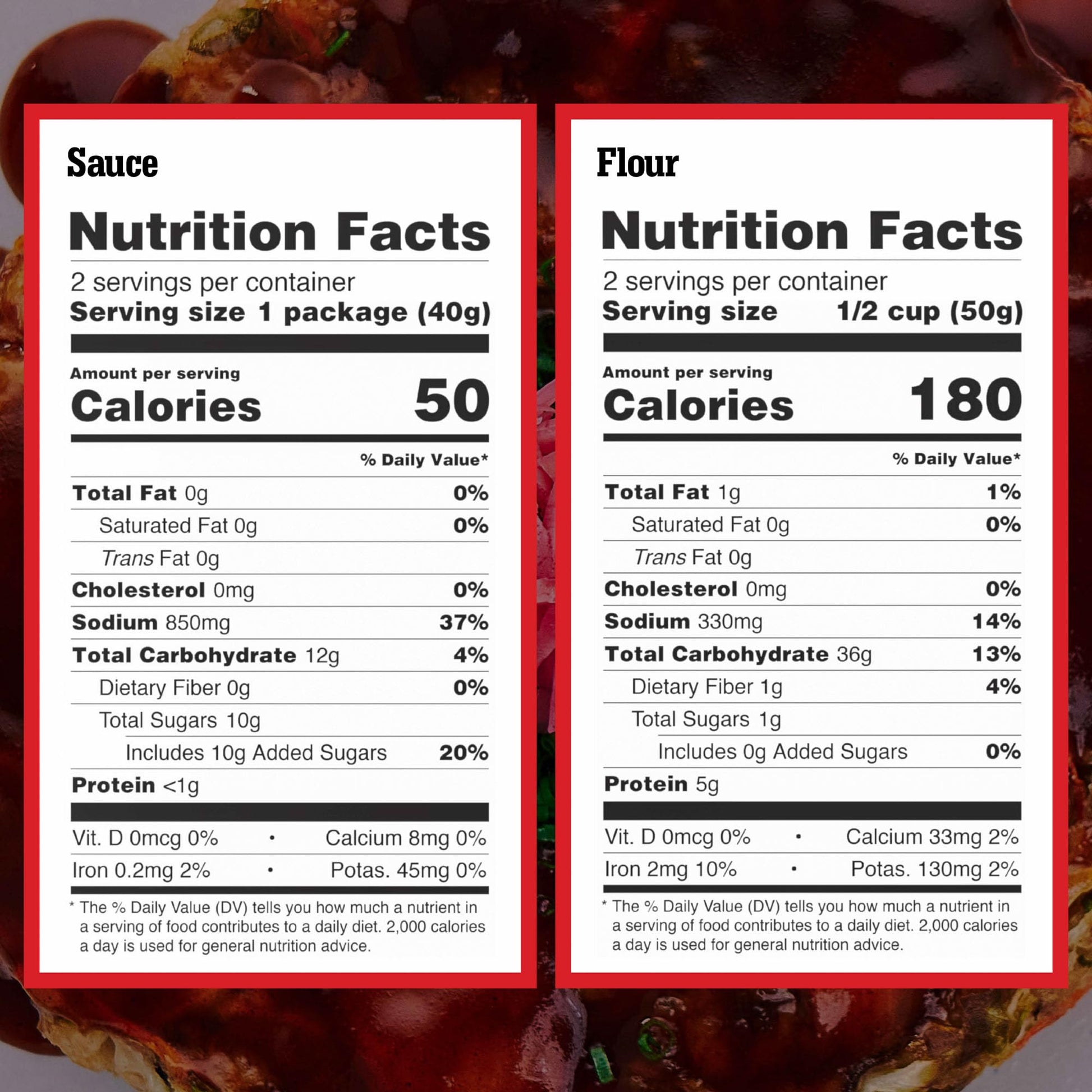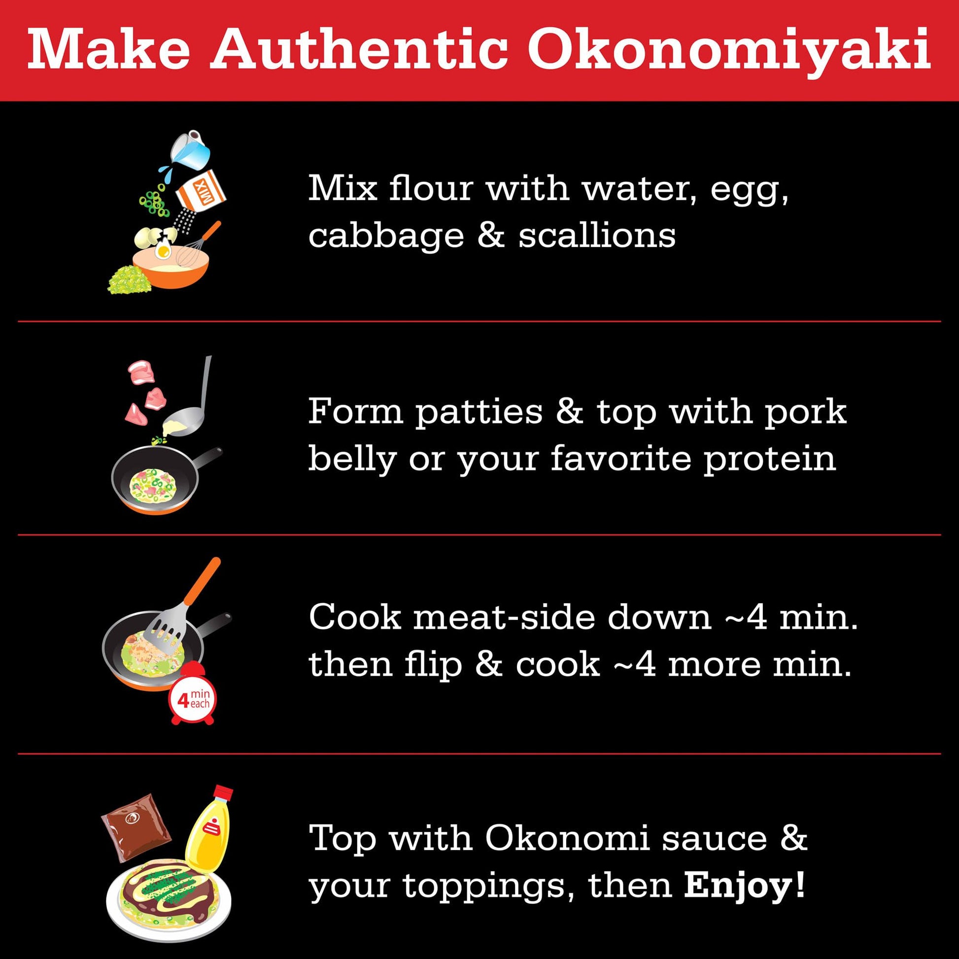 Our okonomiyaki kit includes enough kelp-seasoned okonomiyaki flour and pre-portioned Otafuku okonomi sauce for two pancakes per kit. Your order comes with a total of six (6) kits. Just add your favorite vegetables and meats to complete the meal! Experience restaurant-quality Japanese flavors from the comfort of your home.