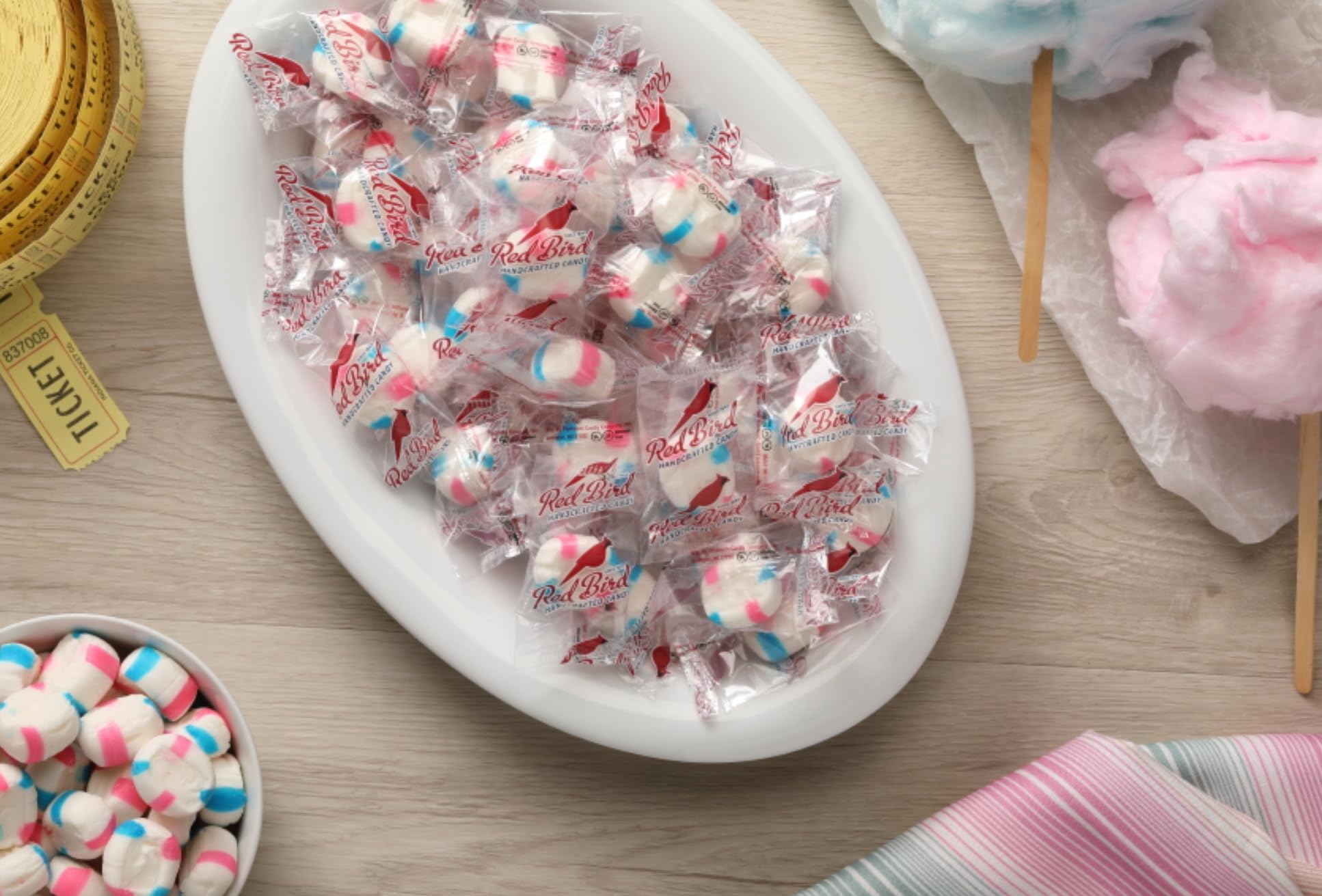 Red Bird Cotton Candy Flavored Candy, Mints Individually Wrapped, Unique Candy, 52 oz Tub