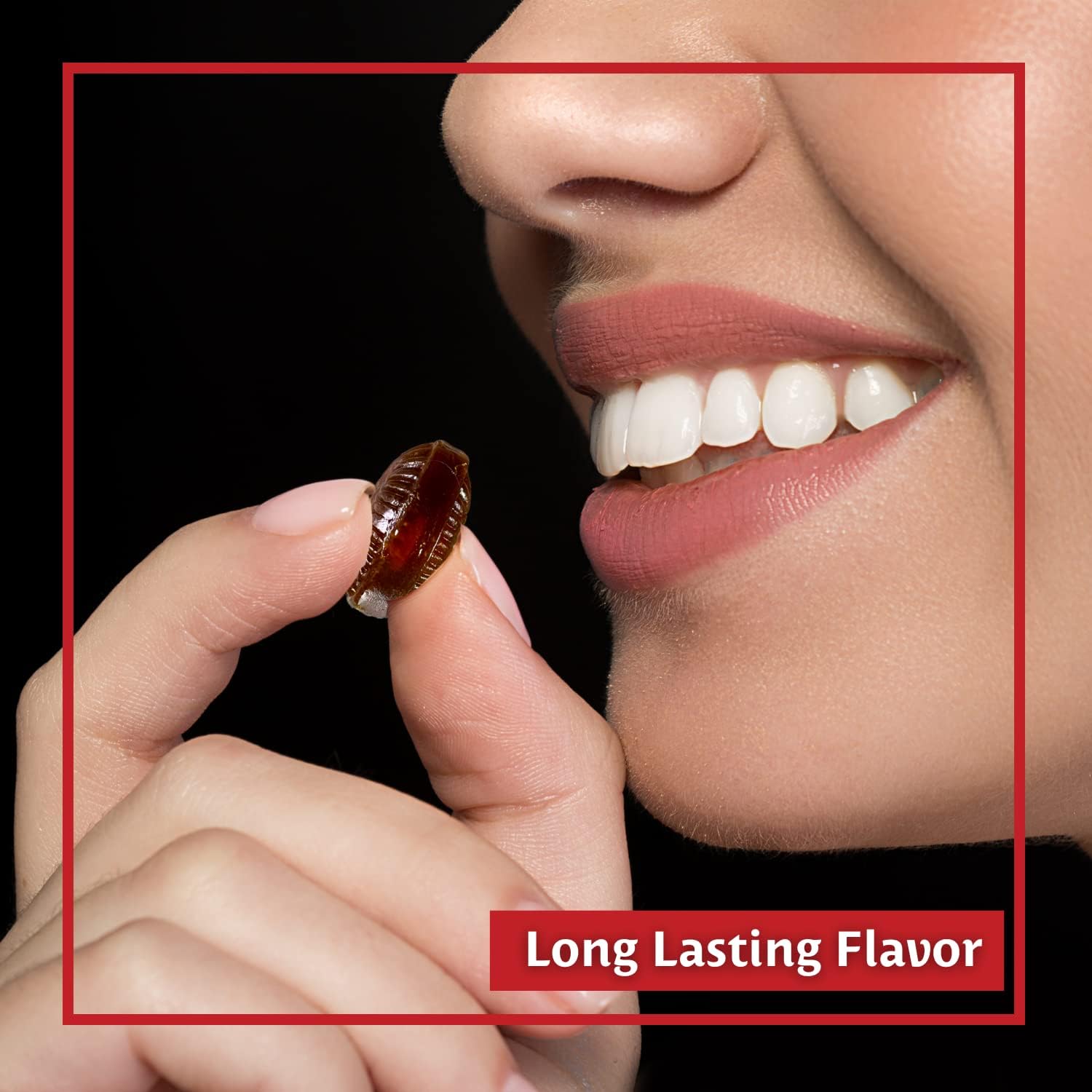 Q: What flavors are included in the Sperlari 'Club' Hard Candy?A: The Sperlari 'Club' Hard Candy features a variety of distinct and refreshing flavors, primarily inspired by traditional Italian recipes, including eucalyptus and menthol, which provide a refreshing, balsamic taste.