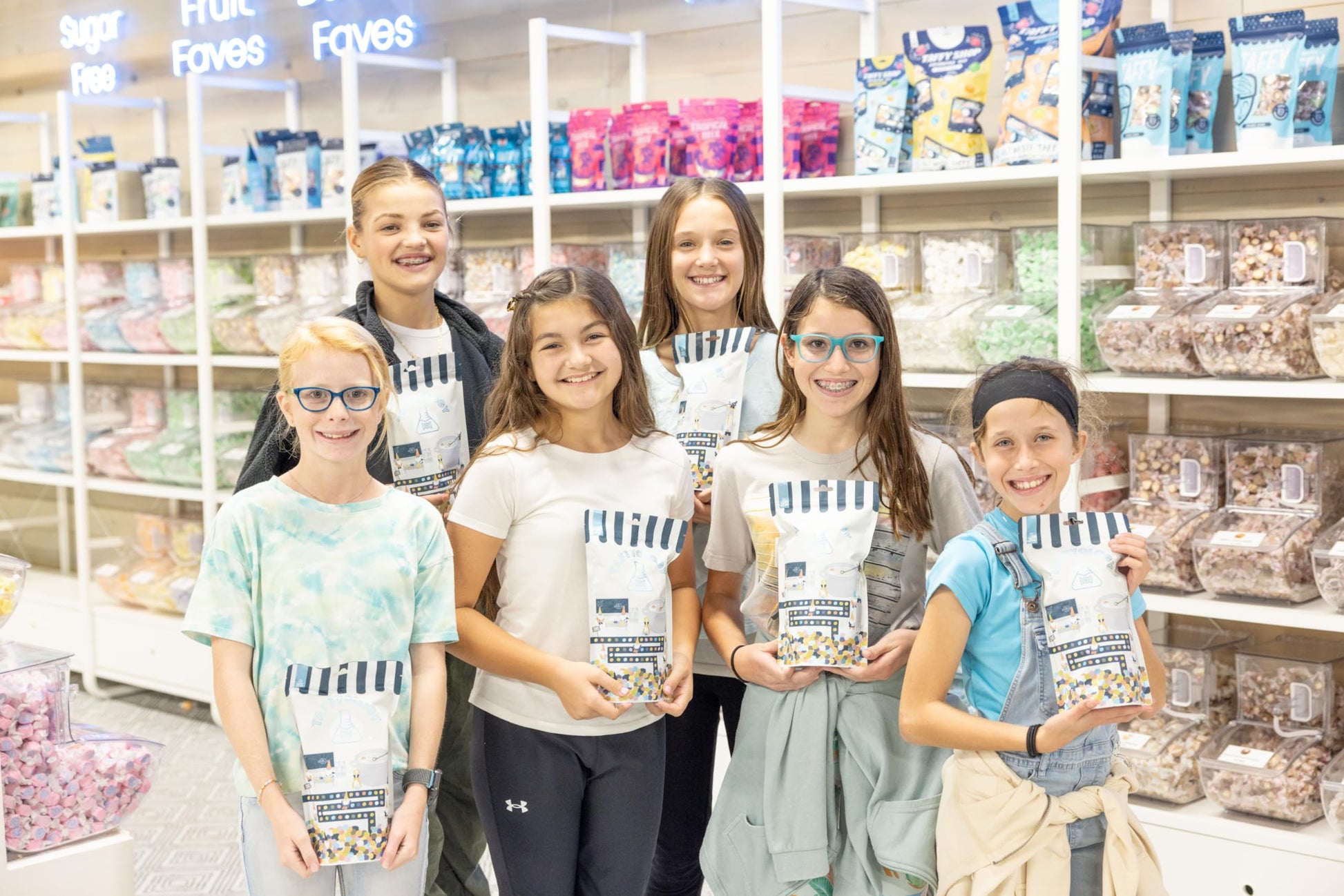 Q: What flavors are included in the Taffy Shop Fruit Favorites Mix?A: The Taffy Shop Fruit Favorites Mix includes a delightful assortment of flavors such as Blueberry Blast, Fresh Orange, Cherry Cherry, Grape Grape, Granny Apple, Wild Watermelon, and Banana Dream.