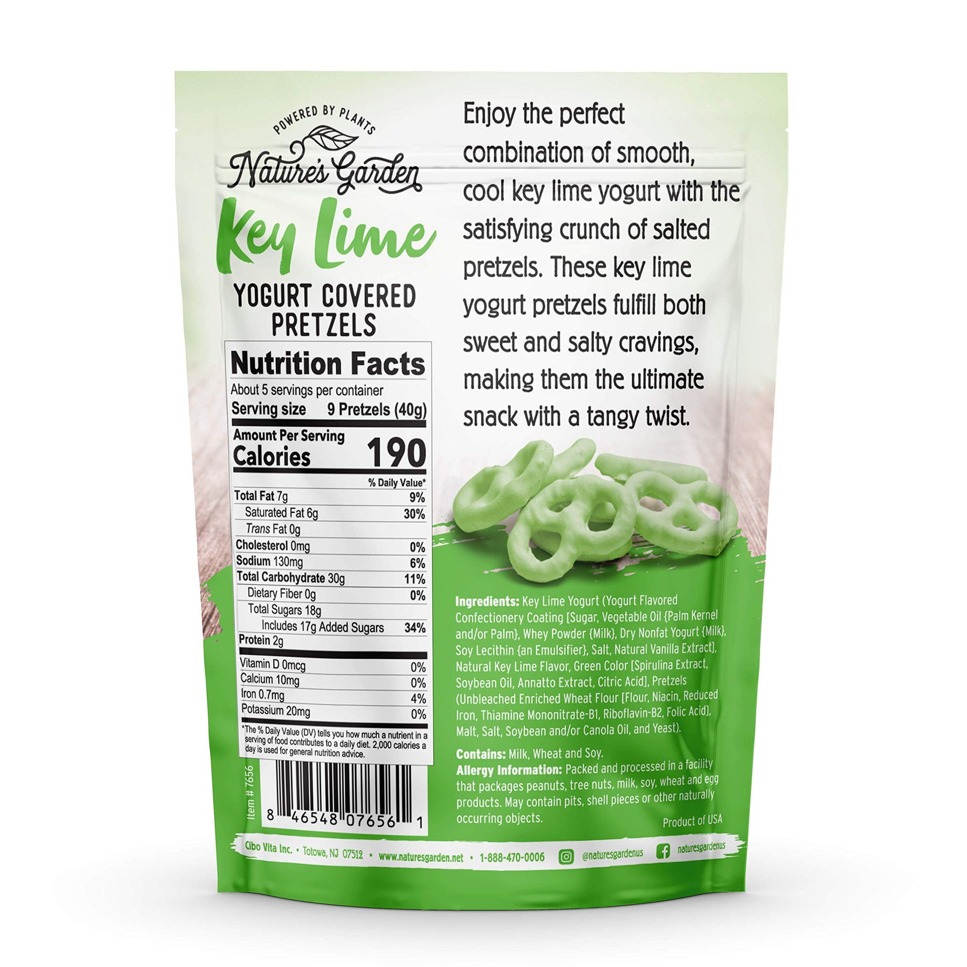 Kick back and relax, because your taste buds are about to go on a tropical vacation! Our Key Lime Yogurt Covered Pretzels are a decadent favorite here at Natures Garden, famous for their sweet and tangy twist drizzled over our crunchy pretzels. The perfect indulgent treat to sail away into snack bliss. While were all about savvy snacking and healthy alternatives here at Natures Garden, we believe in balanced wellness. This means knowing when to empower the body with what it needs, while treating yourself every once in a while. This 7 oz (198g) bag is designed to be savored and shared. Although with unrivaled taste, quality, and flavor, it might be hard to share! Add our Key Lime Yogurt Covered Pretzels to your kids lunch box for a sweet little recess treat. Bring a bag along to your next girls night. Share a bag with your friends when that 3pm slump hits at the office. And be sure to savor every last bite on cheat days! Our Key Lime Covered Pretzels are designed to satisfy your sweet tooth anywhere, anytime. Grab a bag and put your feet up! You deserve to treat yourself. And if youre going to indulge, you may as well do it right with this decadent treat from Natures Garden.