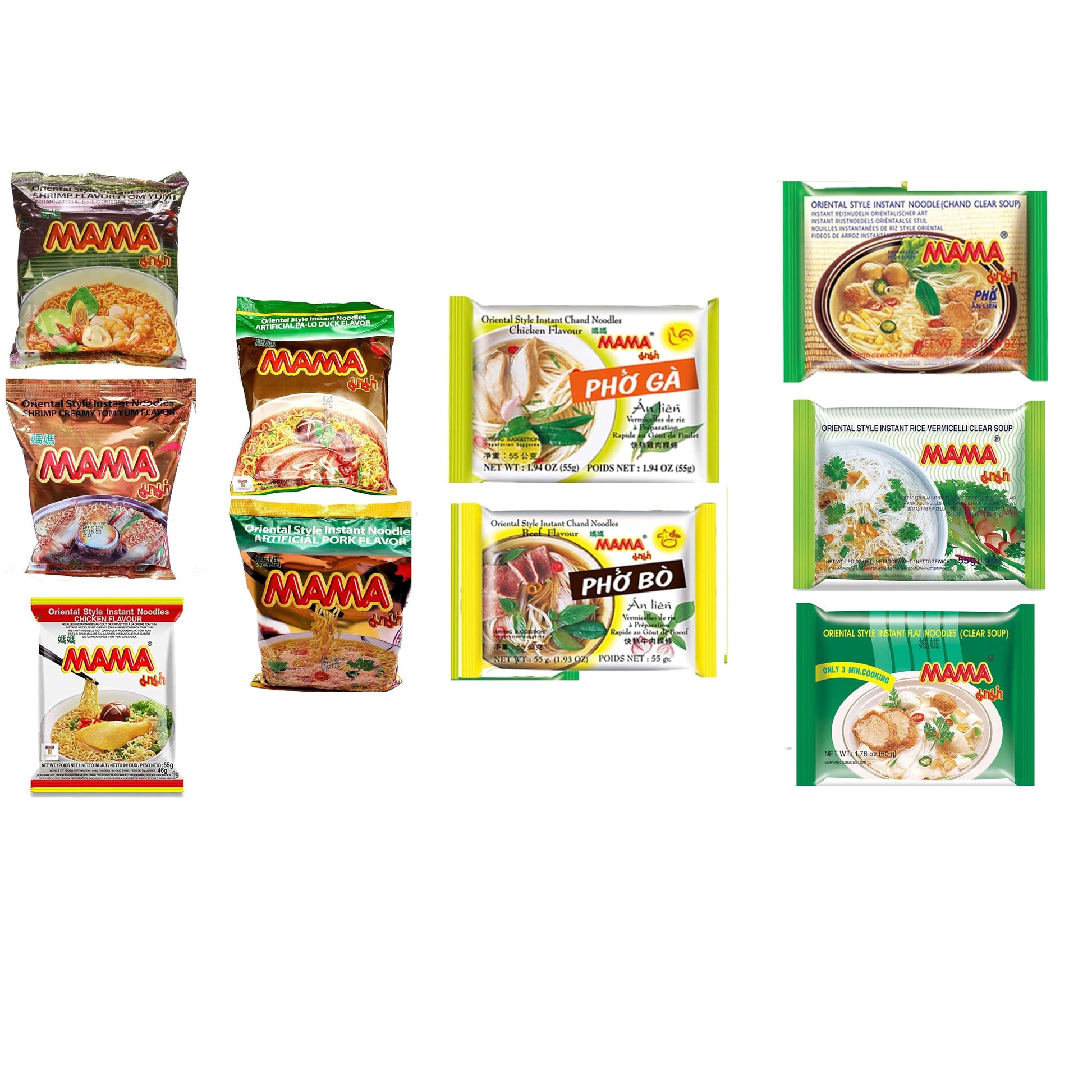 Mama Oriental Style Instant Noodles Mix Flavor Bundle Package Total 30 Packs. Mama Instant Noodle Mix Bundle Package Mama Instant Noodles Are A Quick And Easy Way To Prepare A Delicious Meal. Our Noodles Come In A Variety Of Flavors, Including Beef, Chicken, And Shrimp. They Are Made With High-Quality Ingredients And Are Quick To Prepare, Making Them A Great Option For Busy Families Or Individuals Who Want A Tasty Meal Without Spending A Lot Of Time In The Kitchen. To Prepare, Simply Add Hot Water To The Noodles And Wait For Them To Cook. In Just A Few Minutes, You'Ll Have A Hot And Satisfying Meal Ready To Enjoy. Mama Instant Noodles Are A Popular Choice For A Quick And Easy Meal, And They Are Available In Many Supermarkets And Convenience Stores Across The Country. They Are A Convenient Option For Busy People Who Want To Enjoy A Tasty Meal Without Spending A Lot Of Time Cooking. (10 Flavor Mix, Shrimp Tom Yum Flavor, Shrimp Creamy Tom Yum, Artificial Pa-Lo Duck, Artificial Chicken, Artificial Pork, Chand Clear Soup, Flat Noodle Clear Soup, Rice Vermicelli Clear Soup, Pho Ga Chicken, Pho Bo Beef ) 10 Flavors 3 Bags Each Total 30 Bags,