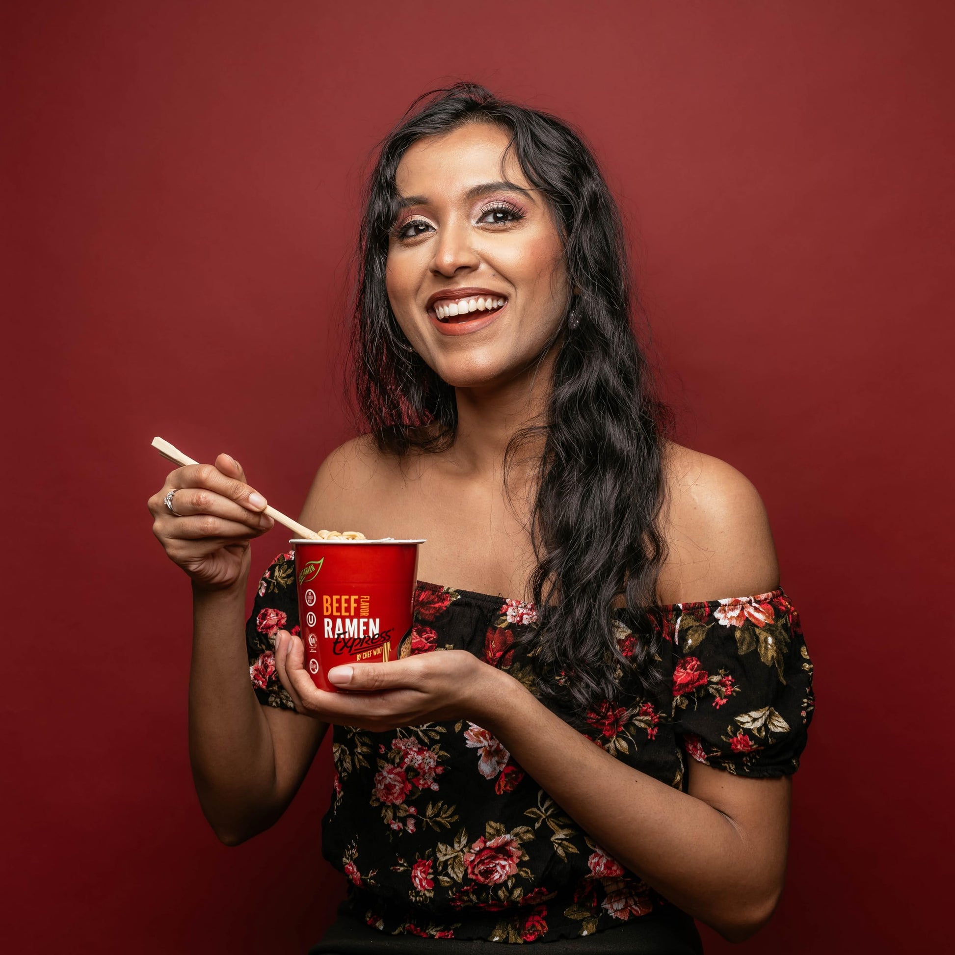 Veggie yumminess for the ramen lover. Feel good about your food. Even on the go. Weve prepared a savory beef flavor ramen that doesnt harm a single cow (or human). Ramen Express is lovingly made in the USA with absolutely no palm oil, TBHQ, MSG, GMO or animal byproducts, served in a biodegradable cup. Certified Kosher and certifiably delicious. Thats the Ramen Express way.