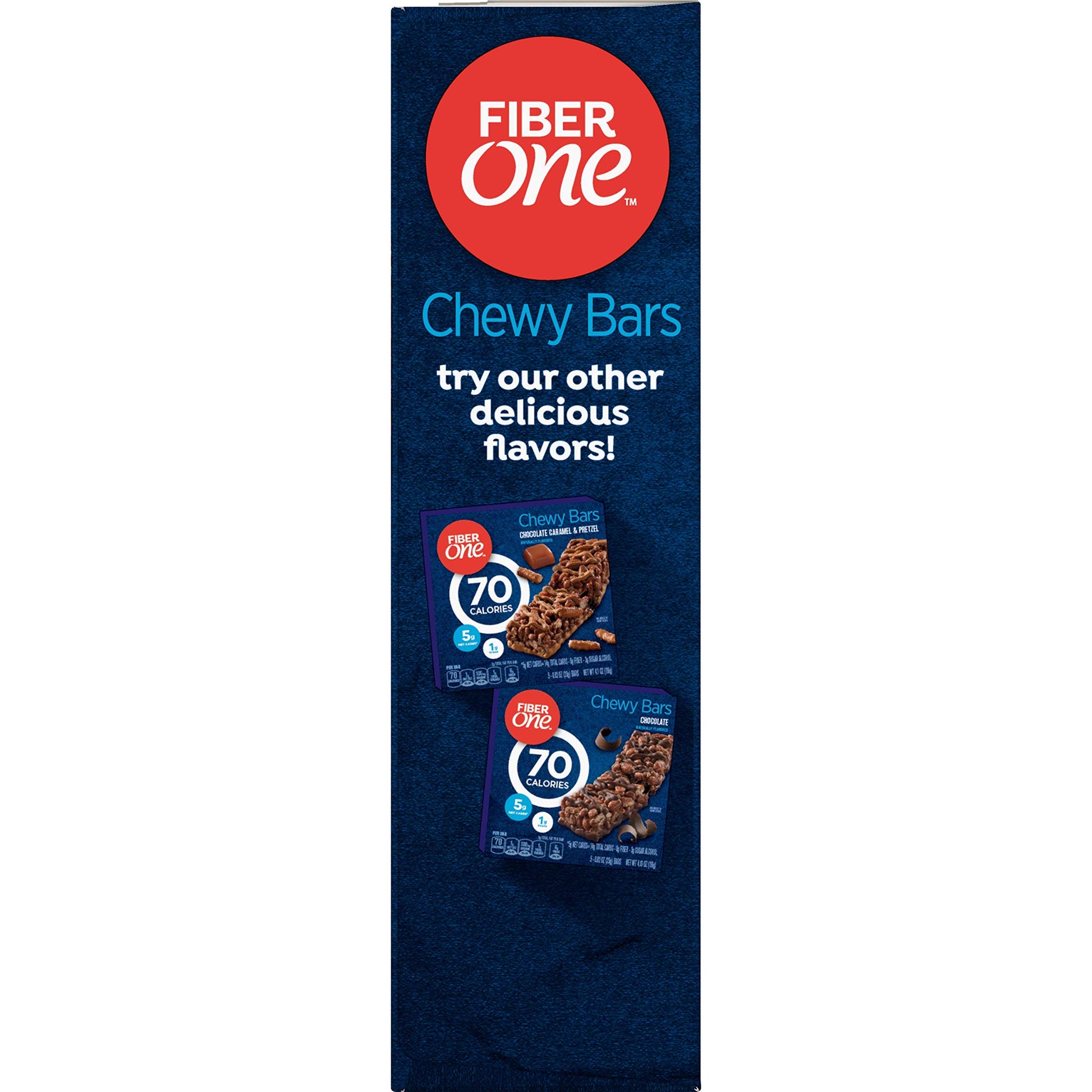 - Q: What is the packaging size of Fiber One Chewy Bars? A: Fiber One 80 Calorie Chewy Bars come in a package that contains five 4.1 oz bars. This makes it convenient for sharing or enjoying multiple bars throughout the week.