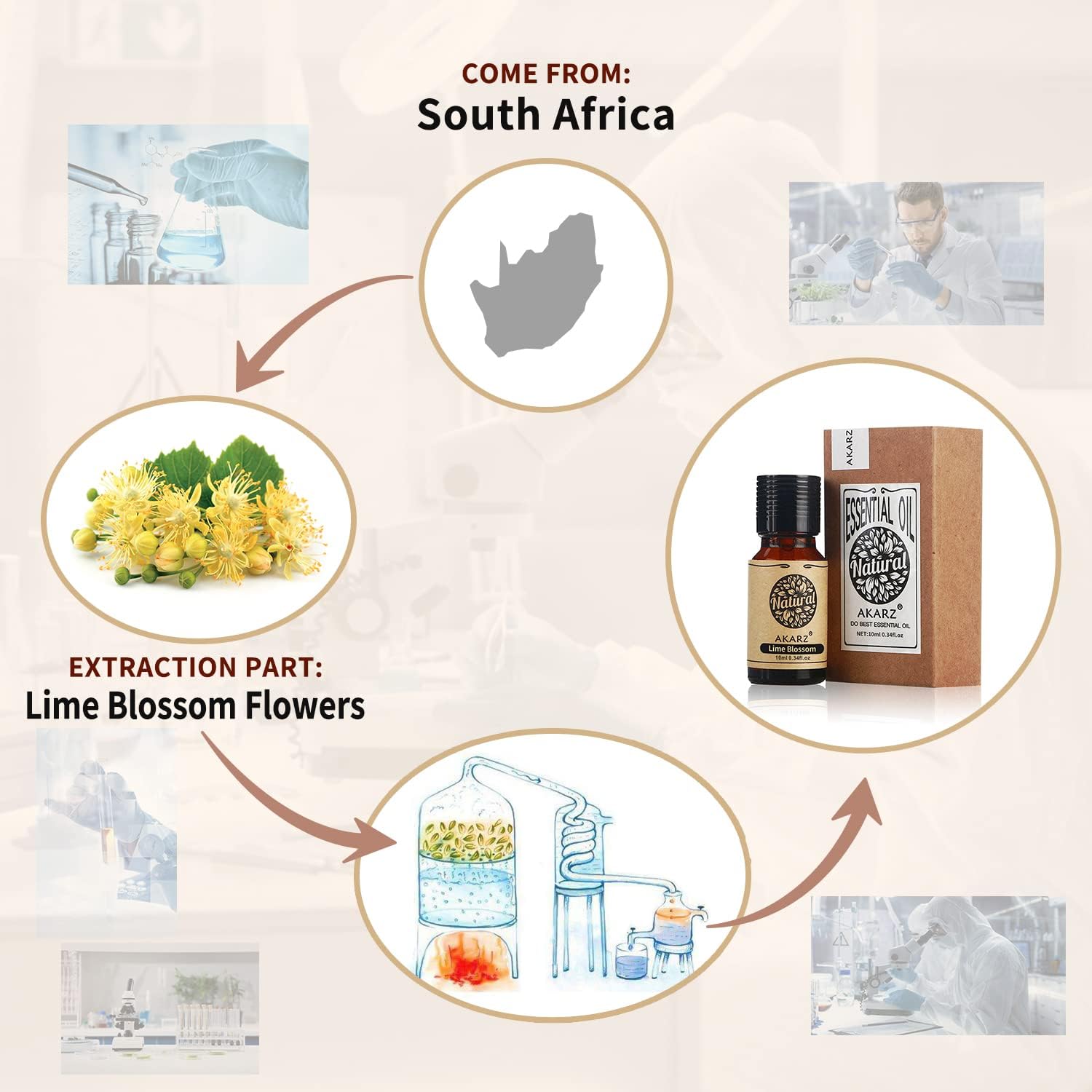- Q: What are the benefits of using AKARZ Lime Blossom Essential Oil? A: AKARZ Lime Blossom Essential Oil offers numerous benefits for skin, body, and hair care. It can help hydrate and nourish the skin, making it an excellent addition to homemade lotions, creams, and scrubs. Additionally, its aromatic properties make it perfect for use in diffusers, candles, and massage oils.