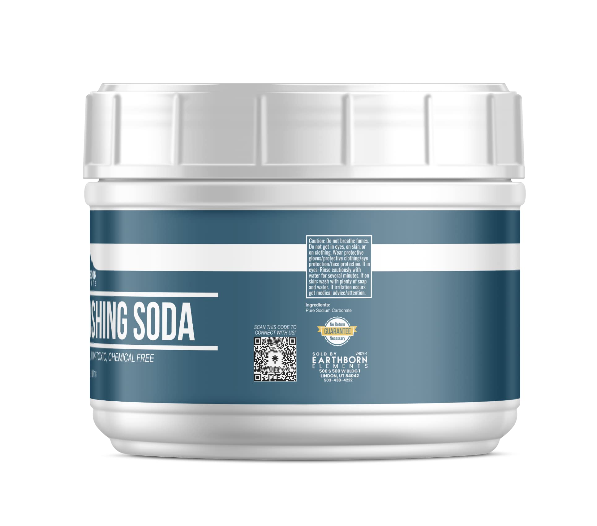 - Q: What size does the Earthborn Elements Washing Soda come in? A: Earthborn Elements Washing Soda is available in a convenient 32-ounce (2 lb) resealable tub, making it easy to store and use without mess.