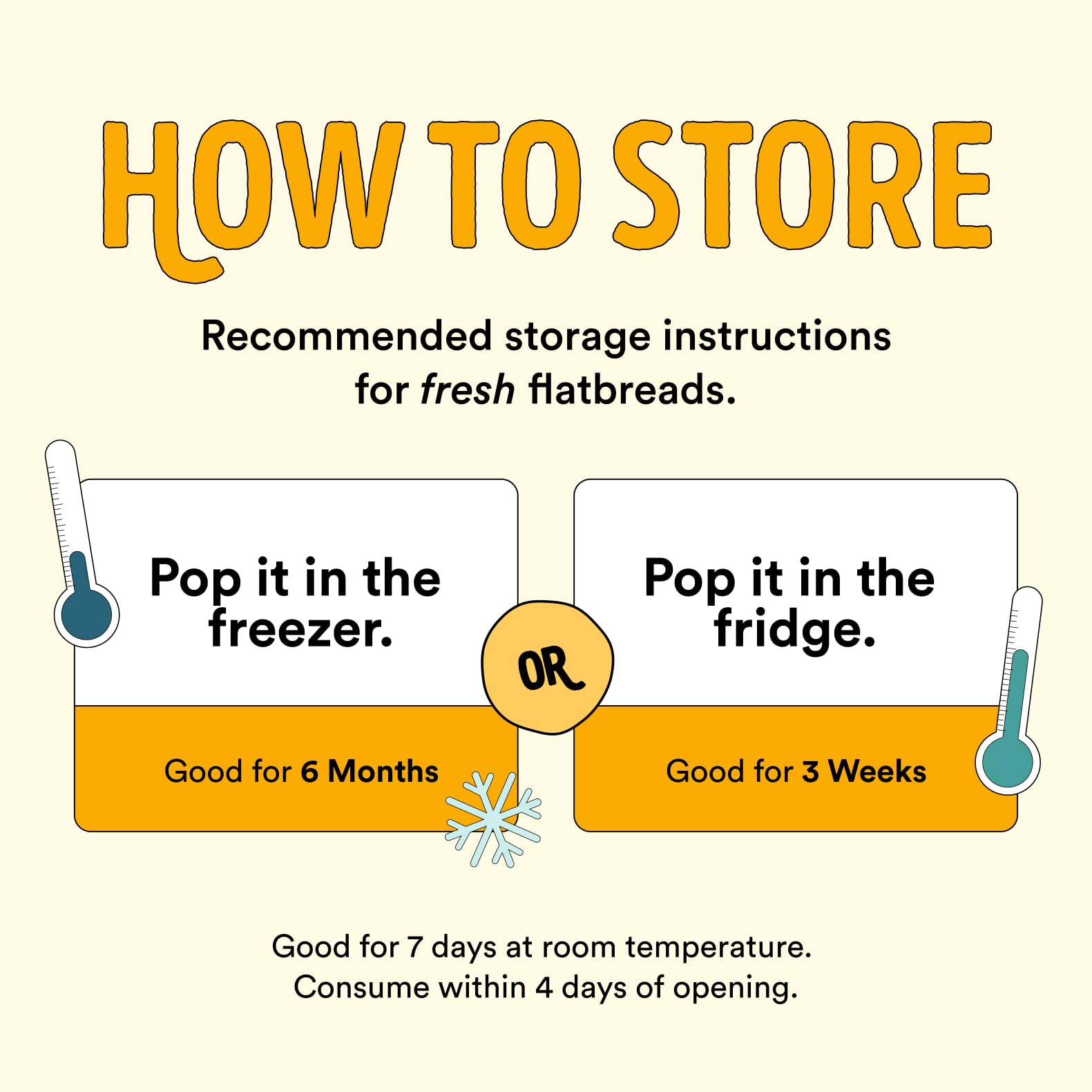 Q: How should I store the Lavash for optimal freshness?A: For optimal freshness, store Atoria's Lavash in the freezer upon arrival, where it can last for up to 6 months. If refrigerated, it remains good for 3 weeks, and at room temperature, it's best consumed within 7 days after opening.