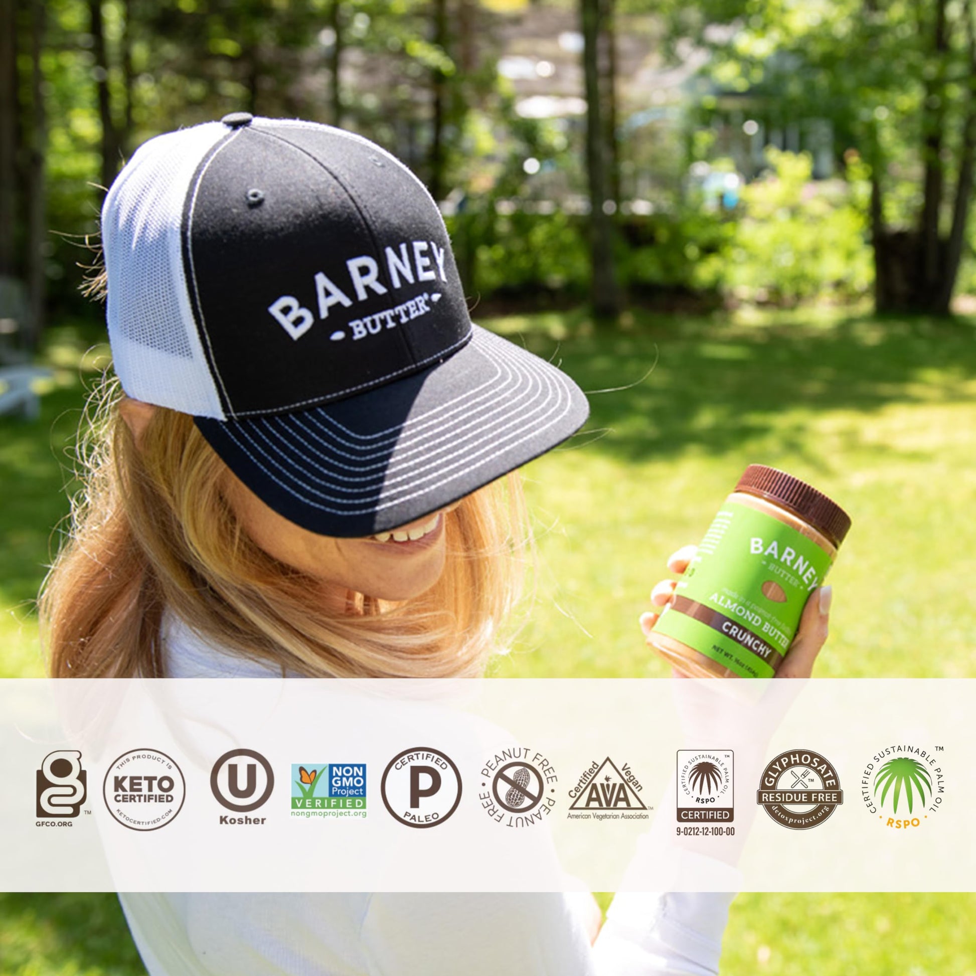 MADE IN AMERICA WITH CALIFORNIA ALMONDS Our "original, classic" Barney Almond Butter blended with diced almonds to give it a super crunchy texture. Super spreadable and slightly sweetened and salted.