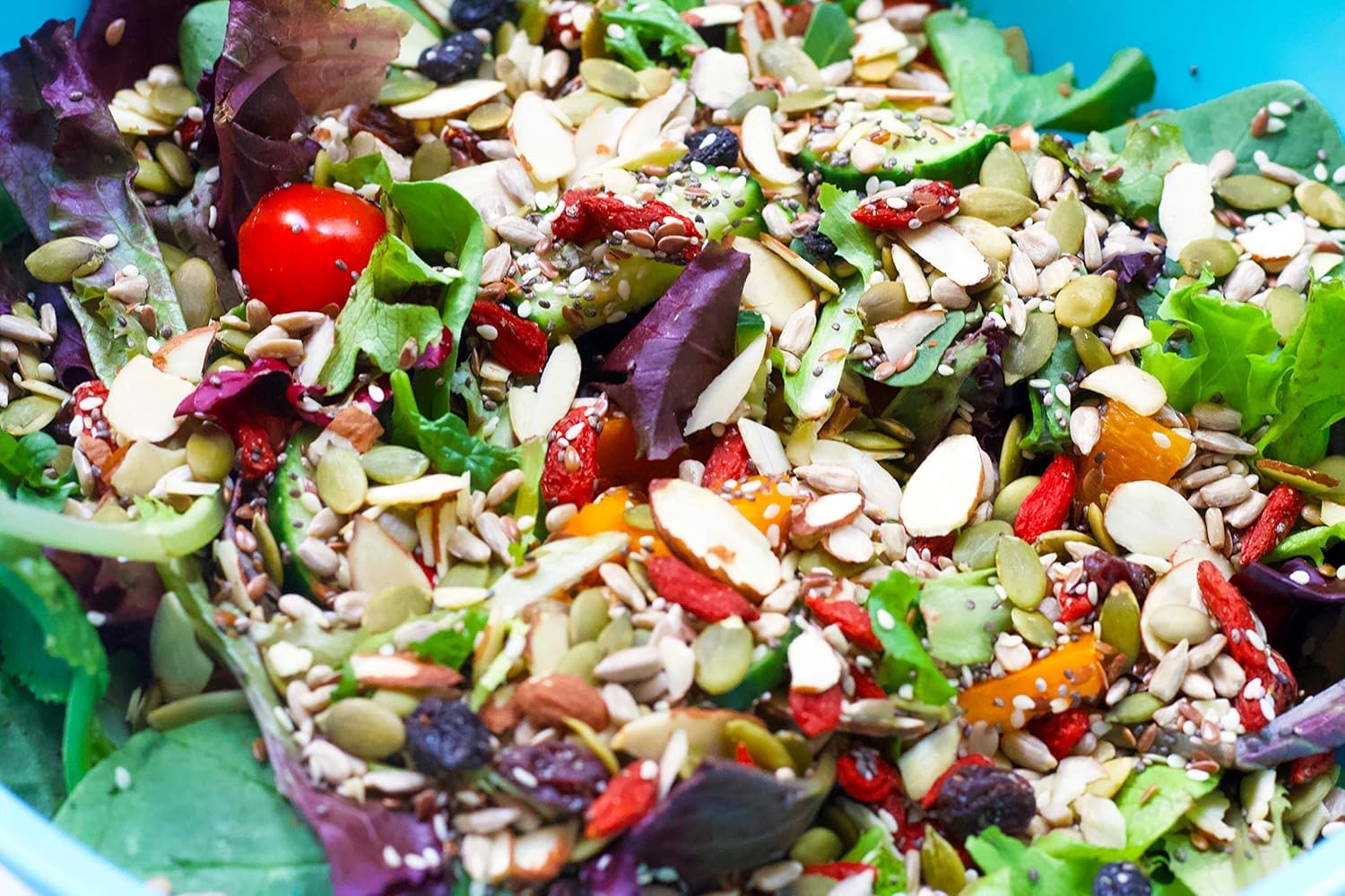 Q: What are the main ingredients in BetterFoods Raw Superfoods Crunch Mix?A: BetterFoods Raw Superfoods Crunch Mix includes a blend of raw pumpkin seeds, sunflower seeds, almonds, Thompson raisins, organic goji berries, organic chia seeds, organic flax seeds, and sesame seeds. This mix provides a nutrient-rich snack packed with protein and essential vitamins.