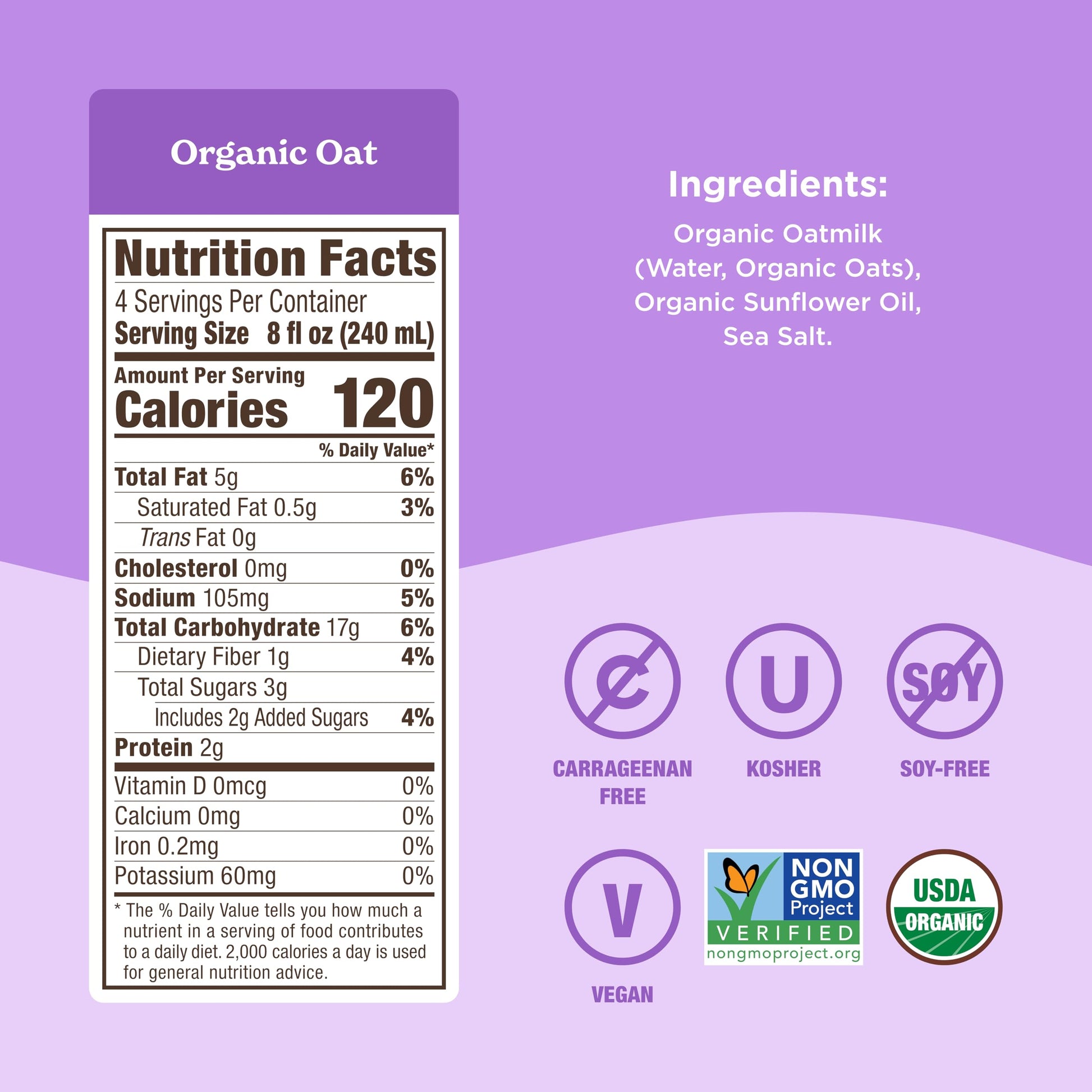 Califia Farms - Organic Oat Barista Blend, 32 oz (Pack of 6), Shelf Stable, Dairy Free, Plant Based, Vegan, Non GMO, Organic Mil