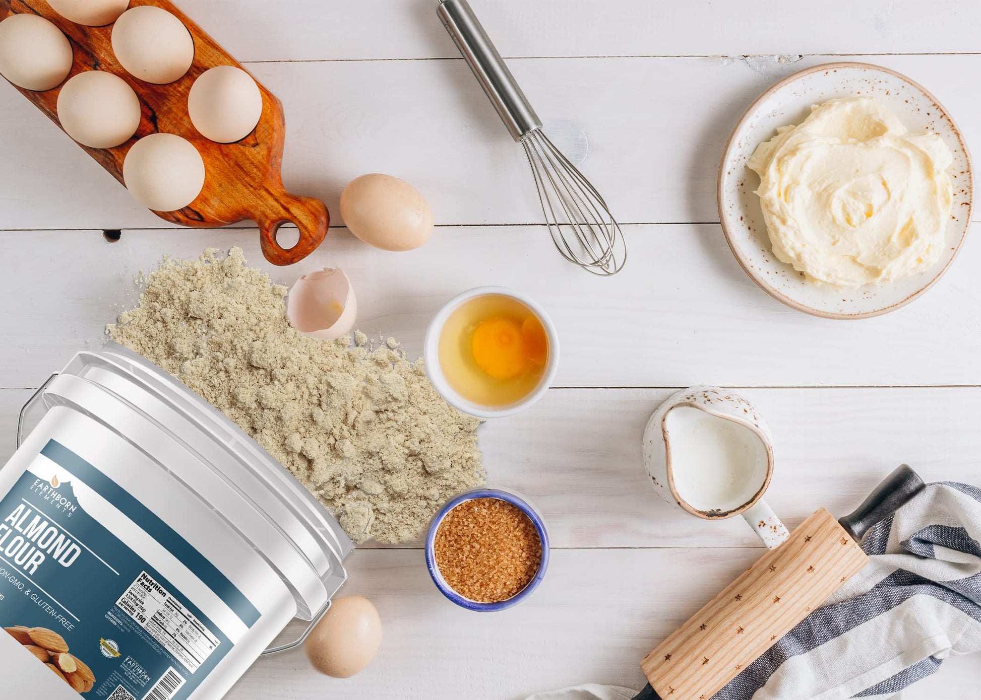 Q: How is Earthborn Elements Almond Flour packaged?A: This almond flour comes in a resealable 2-gallon bucket, ensuring freshness and convenience for storage.