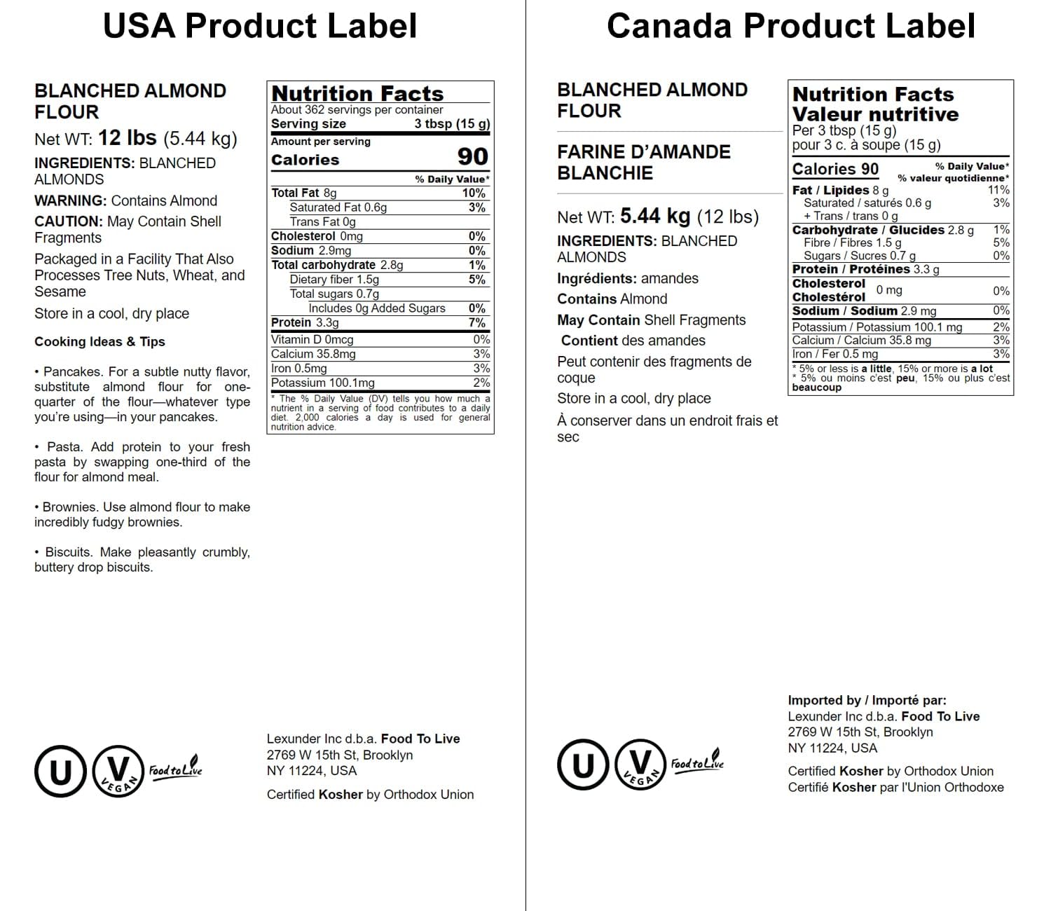 - Q: Is Food to Live's almond flour processed in a nut-free facility? A: No, Food to Live's blanched almond flour is processed in a facility that also processes tree nuts and wheat. If you have severe allergies, it’s important to consider this before purchasing.