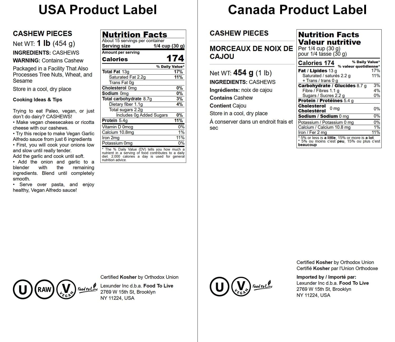 Q: Are Food to Live Cashew Pieces safe for people with nut allergies?A: While Food to Live Cashew Pieces are hypoallergenic and less likely to cause allergies compared to walnuts and peanuts, individual intolerance may still occur. It's important to consult with a healthcare professional if you have any concerns.