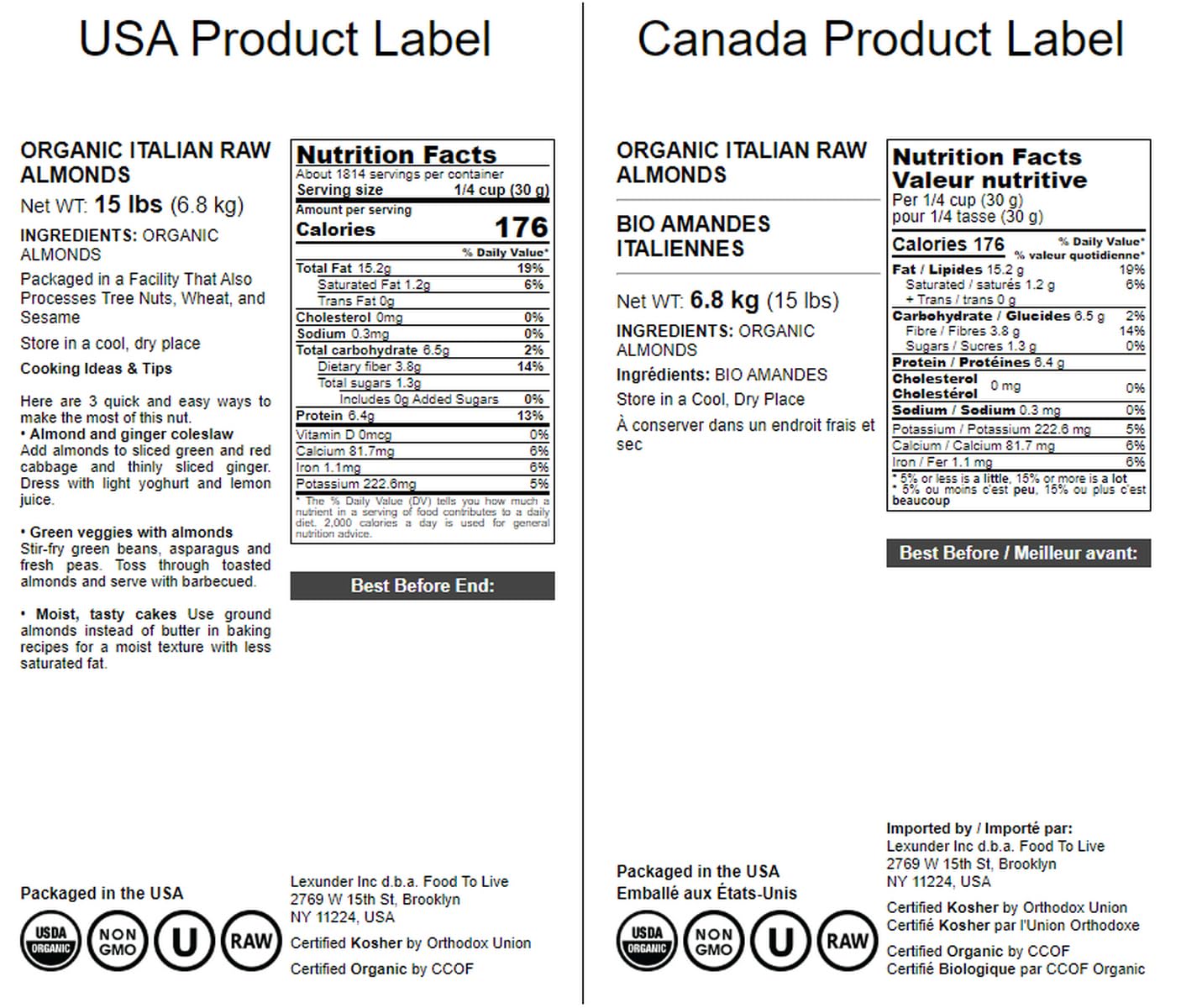 Truly Raw And Unpasteurized, Food To Live Certified Organic Almonds Are Large, Evenly Shaped, And Delicious. | Non-Gmo, Gluten-Free, And Vegan-Friendly Almonds That Make A Great Tasty Snack. | Eat Them Raw Or Roasted, Make Almond Milk, Meal, Or Butter. Everything Tastes Better With Almonds. | Food To Live Certified Organic Almonds Are Unsalted, So You Can Roast And Flavor Them To Your Taste. | Packed In A Quality Resealable Bag That Will Help You Keep The Almonds Fresh For Months.