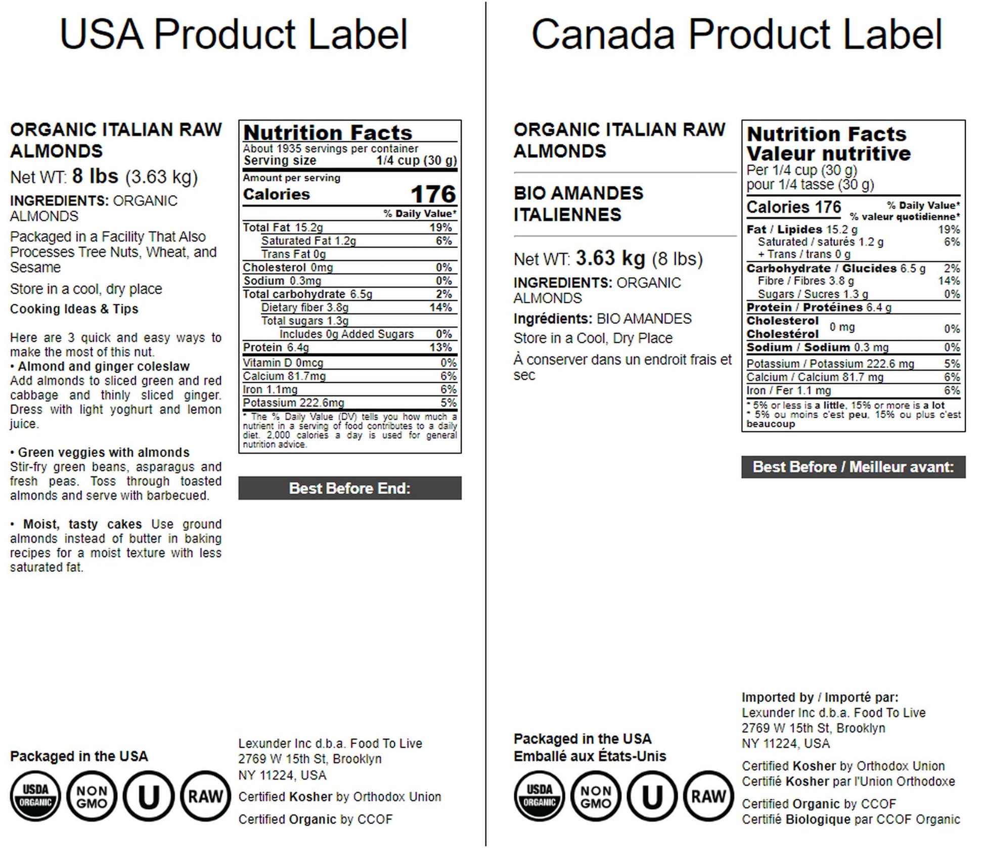 Q: Are these almonds suitable for a vegan or gluten-free diet?A: Yes, Food to Live Organic Almonds are vegan-friendly and gluten-free, making them an ideal snack for various dietary preferences.