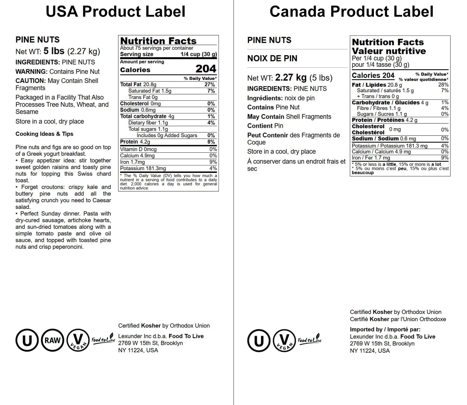 Q: Are Food to Live pine nuts raw and vegan?A: Yes, Food to Live pine nuts are raw, kosher, and vegan. They contain no added preservatives or artificial ingredients, making them a healthy choice for those following a plant-based diet.