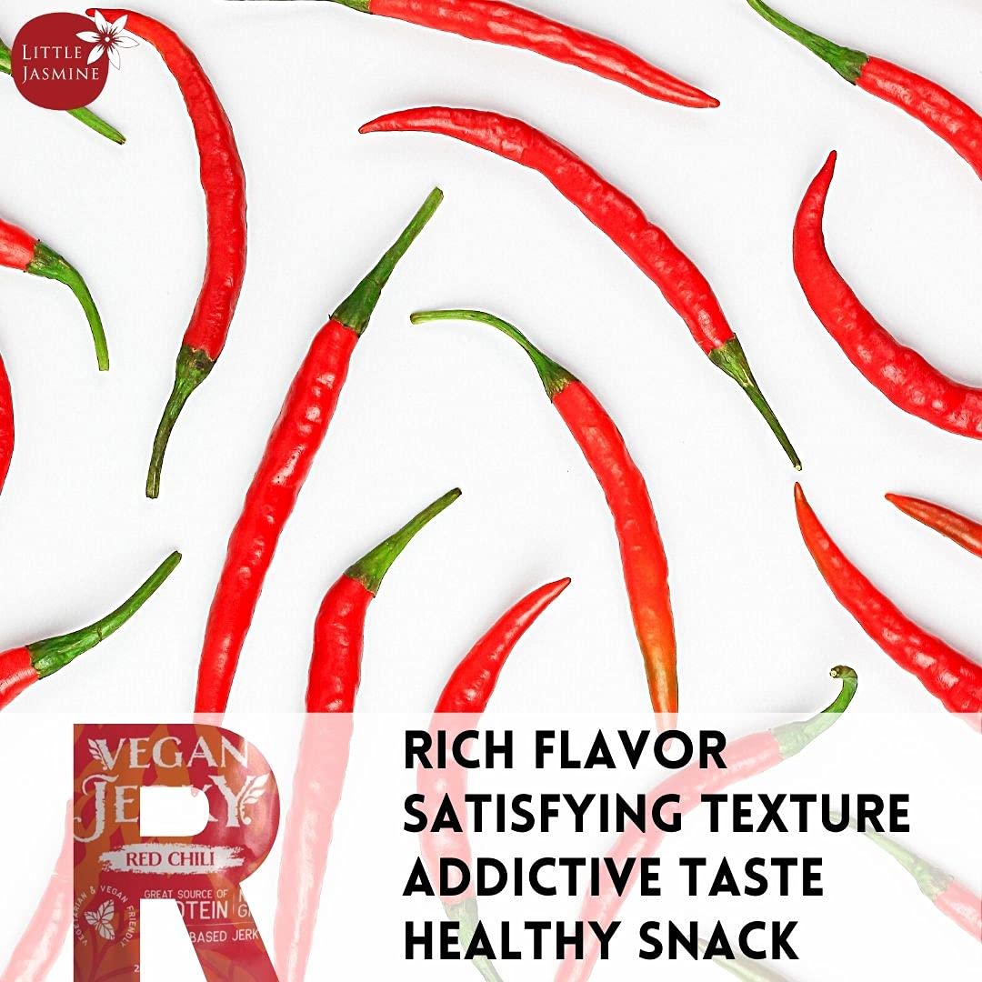 - Q: How much protein does Little Jasmine Vegan Jerky contain? A: Each 7.5-ounce bag of Little Jasmine Vegan Jerky contains 40 grams of healthy vegan protein, making it an excellent snack for those looking to boost their protein intake.