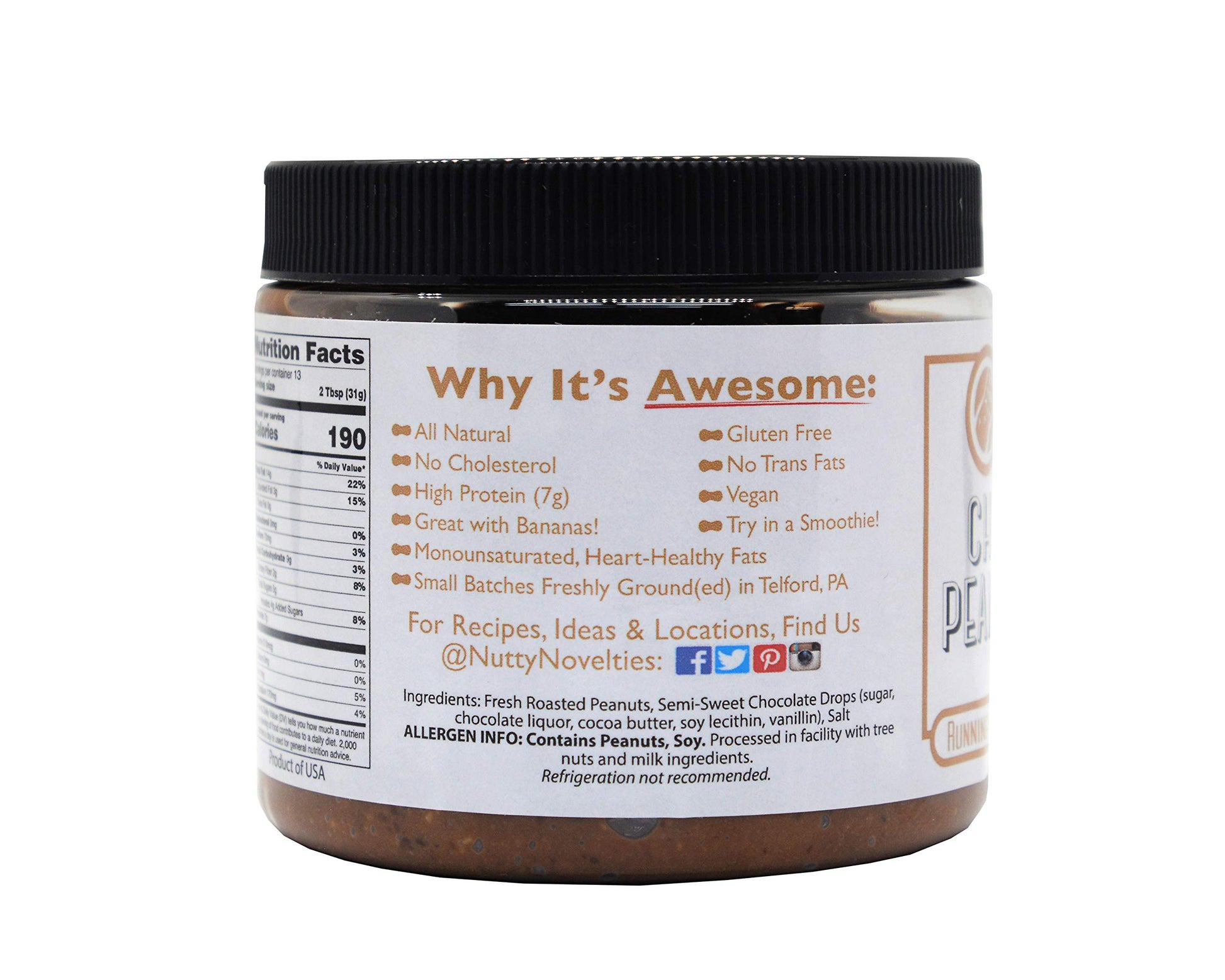 - Q: Is this peanut butter gluten-free and non-GMO? A: Yes, Nutty Novelties Chocolate Peanut Butter is both gluten-free and non-GMO. It is crafted without any genetically modified organisms and is safe for those with gluten sensitivities.