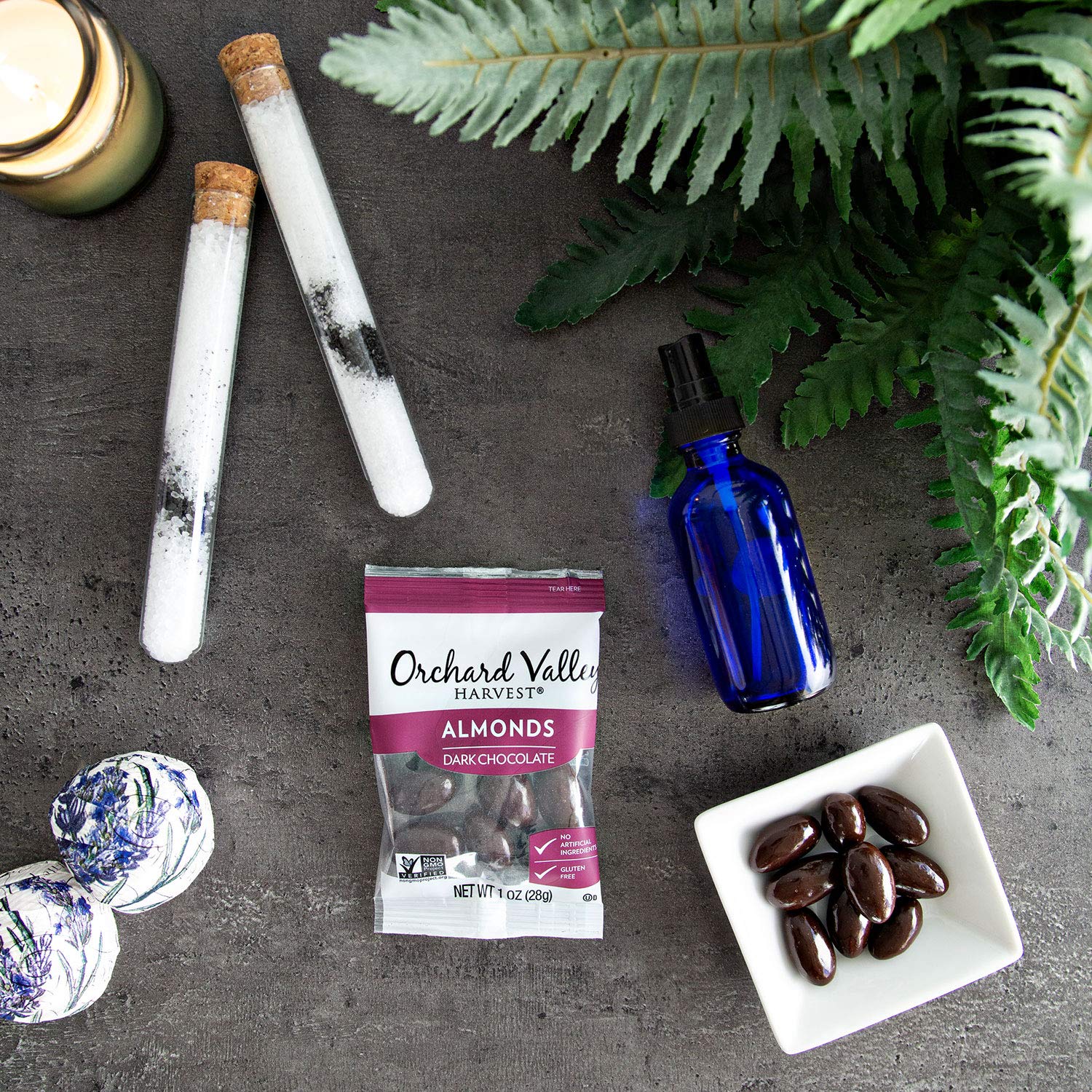 - Q: How many servings are in a pack of Orchard Valley Harvest Dark Chocolate Covered Almonds? A: Each pack of Orchard Valley Harvest Dark Chocolate Covered Almonds contains eight 1-ounce bags, making it a convenient single-serve multipack for on-the-go snacking or sharing.
