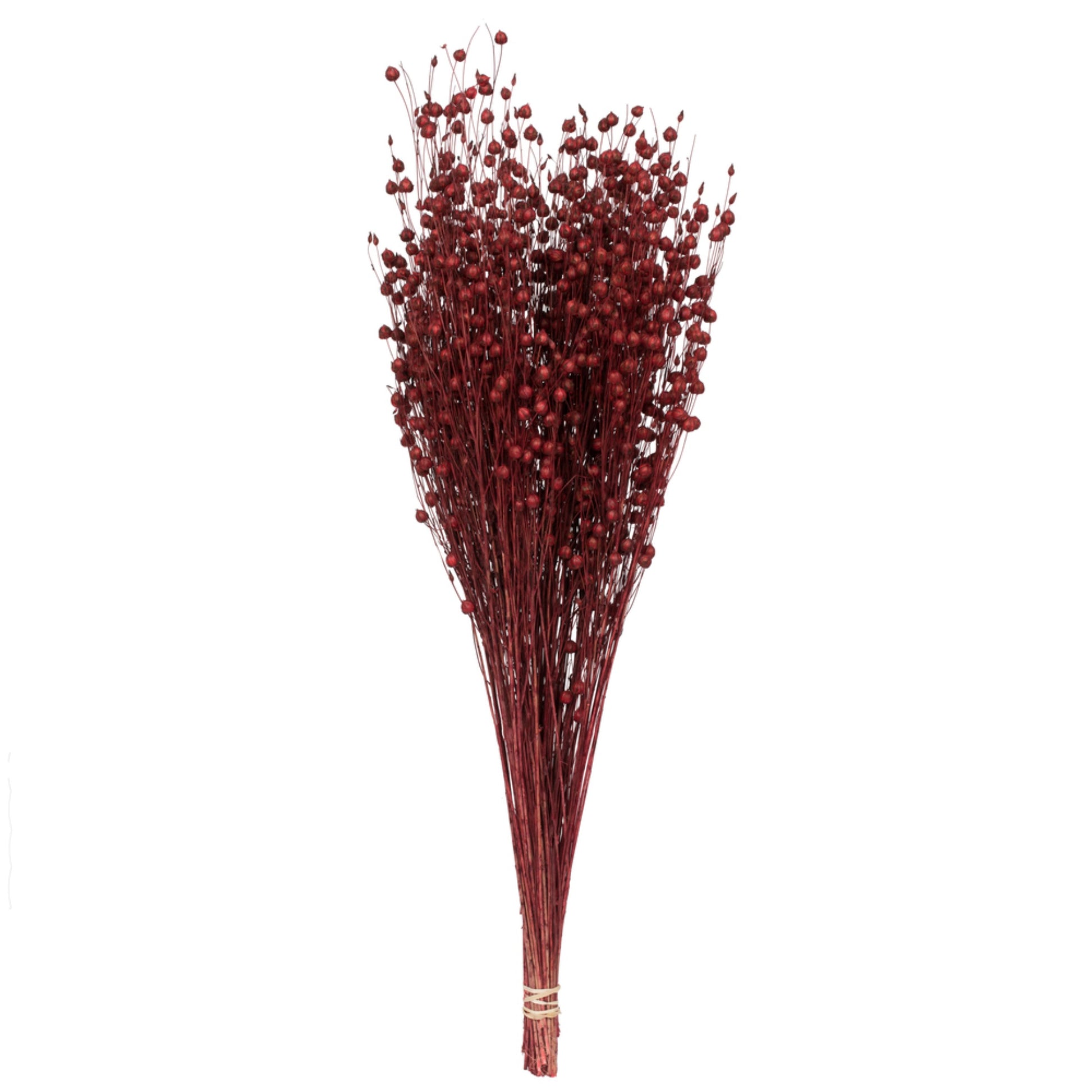 Vickerman Natural Botanicals 20-22" Red Dried Flax Linum 4 oz. Bunch. This is a natural product, so size dimensions may vary plant to plant. One bunch in a floral sleeve.