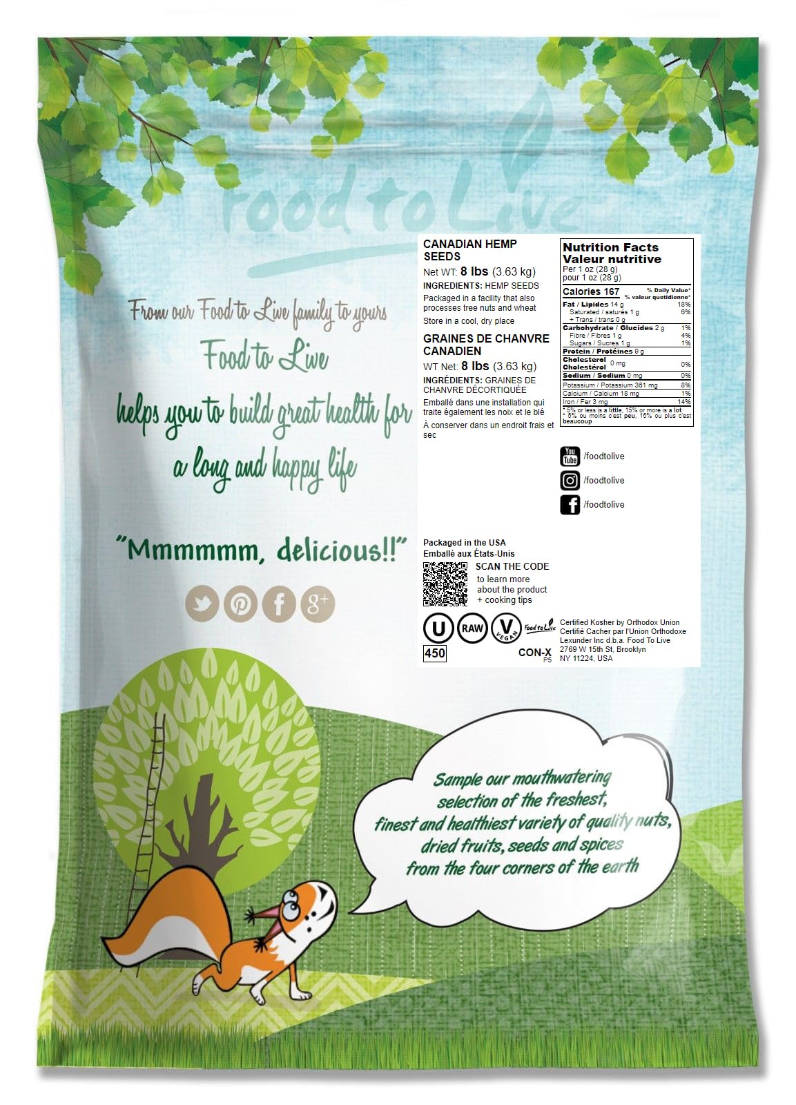 - Q: What is the size of the packaging for Canadian Hemp Hearts? A: The Canadian Hemp Hearts are available in an eight-pound package, which is ideal for bulk purchases and frequent use.