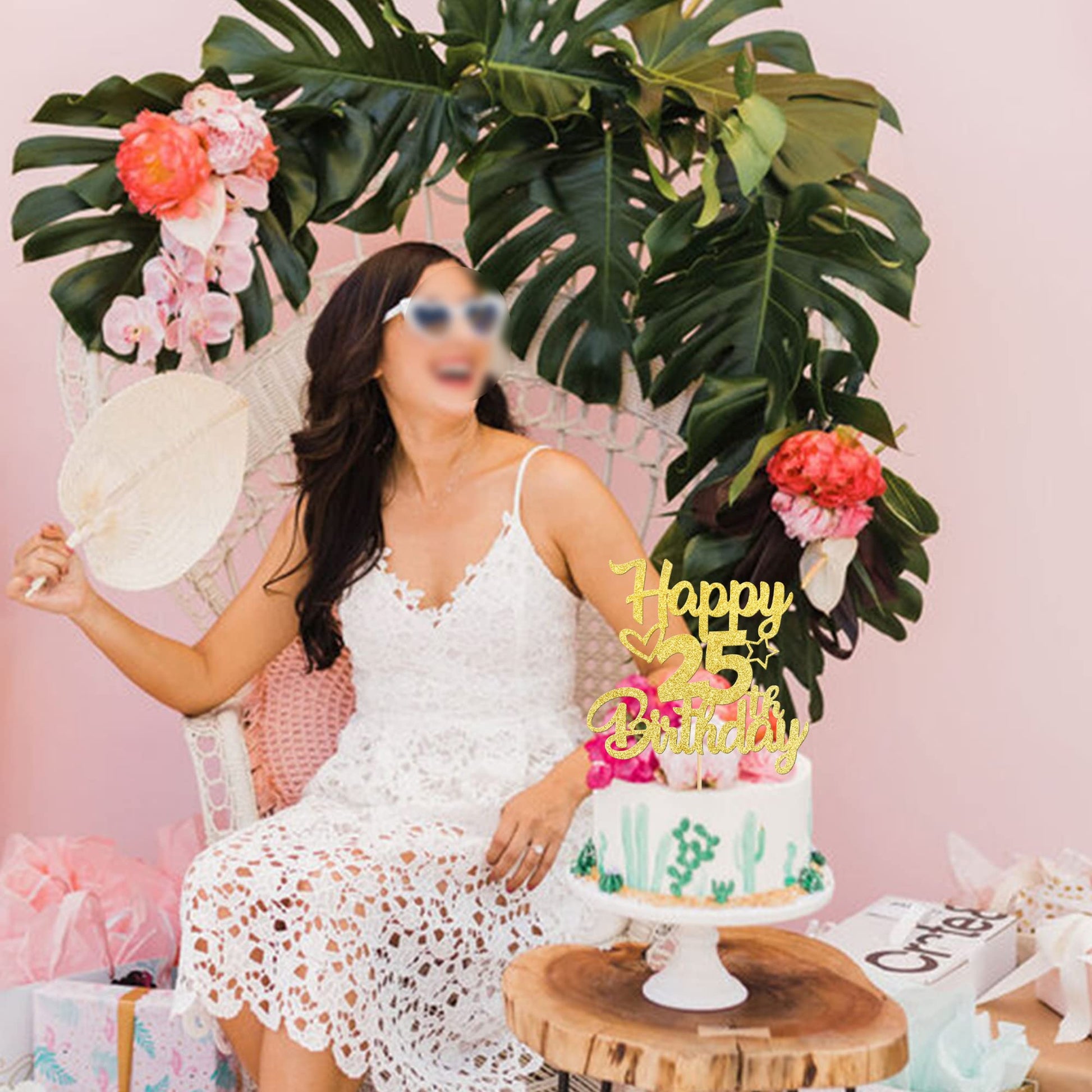 Q: What types of celebrations is this cake topper suitable for?A: This cake topper is ideal for birthday theme parties, especially for a 25th birthday celebration, as well as anniversary theme parties, adding a touch of elegance to your dessert table.