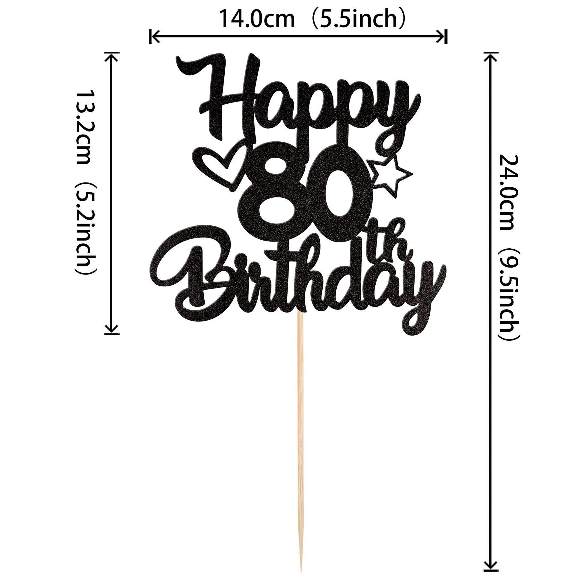 Q: What material is the 80th birthday cake topper made of?A: The 80th birthday cake topper is made of high-quality single-sided glitter thick card stock, ensuring durability and a beautiful shimmer for your celebration.