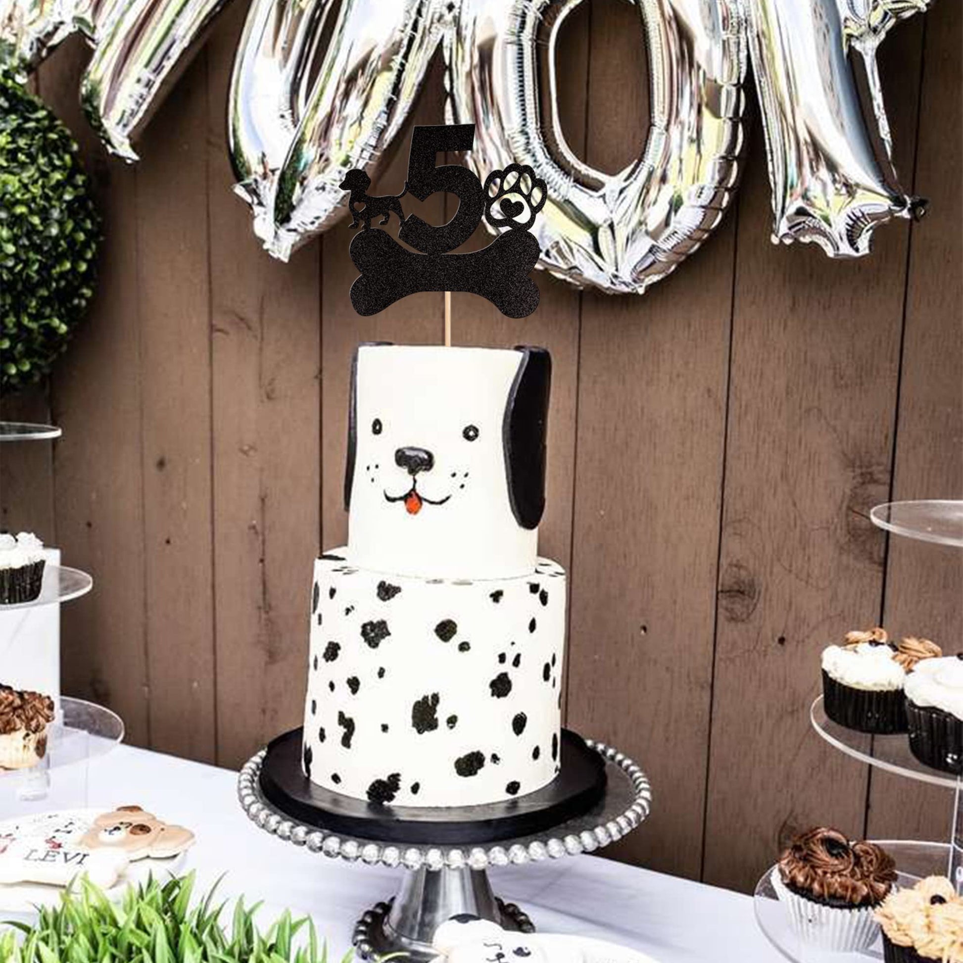 Q: Can I use this cake topper for other celebrations besides a 5th birthday?A: Absolutely! This versatile cake topper is perfect for various occasions such as puppy dog theme parties, baby showers, and 5th anniversary celebrations, enhancing the decoration of cupcakes and desserts.