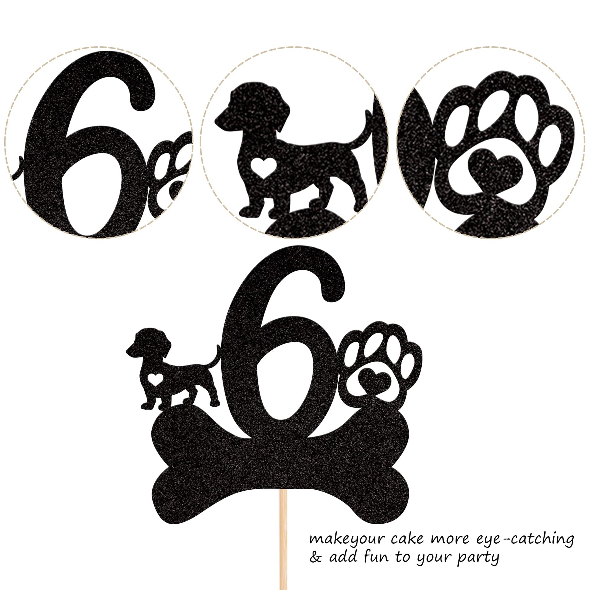 Let'S Pawty Theme Kids Boys Girls 6Th Birthday Party Cake Decorations Supplies Perfect For 6Th Birthday Theme Party, Puppy Dog Theme Party, Let'S Pawty Theme Party, 6Th Anniversary Theme Party Cupcake Decorations. Pack Of 1 Pcs,1 Pcs / Card +Opp Bag The Size Is W 5.4 Inch * H 8.7 Inch / W 13.7 Cm * H 22.0 Cm ( With Stick ) Made Of High Quality Glitter Paper Card Stock And Food Grade Sticks,Thick And Sturdy. The Cake Topper Is Single Glitter, The Back Is White, And They Are Intended For Decoration Only, Please Do Not Put Them In Oven Or Microwave. If The Item You Received Has Any Defects, Please Contact Us For Refund.We Will Deal With It Within 24 Hours.