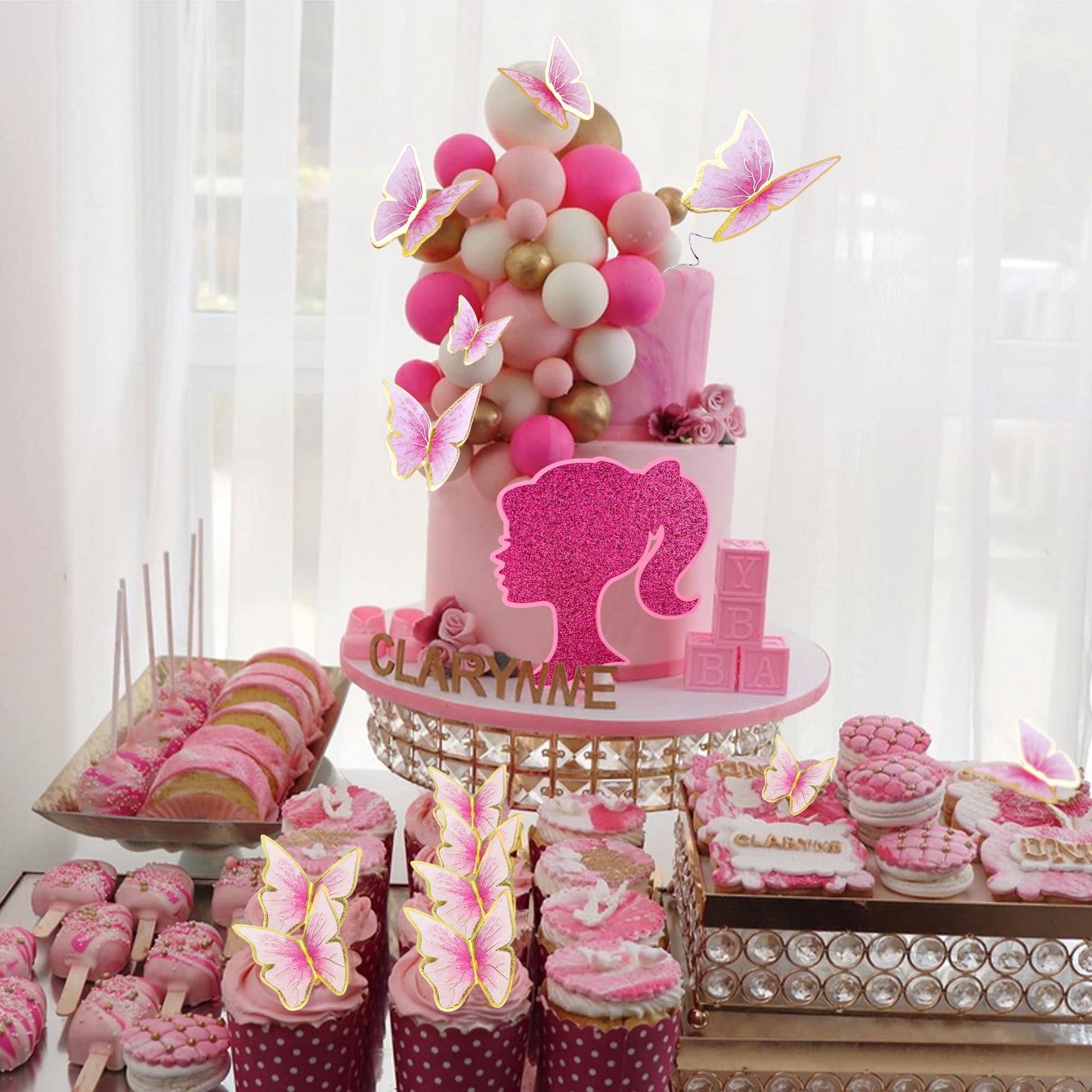 Q: What is included in the package of the cake toppers?A: The package contains 27 hot pink girl-themed cake tops, which include a girl cake topper, hot pink, pink, and white decorative balls, as well as butterflies. The bright colors are sure to attract attention at any event.