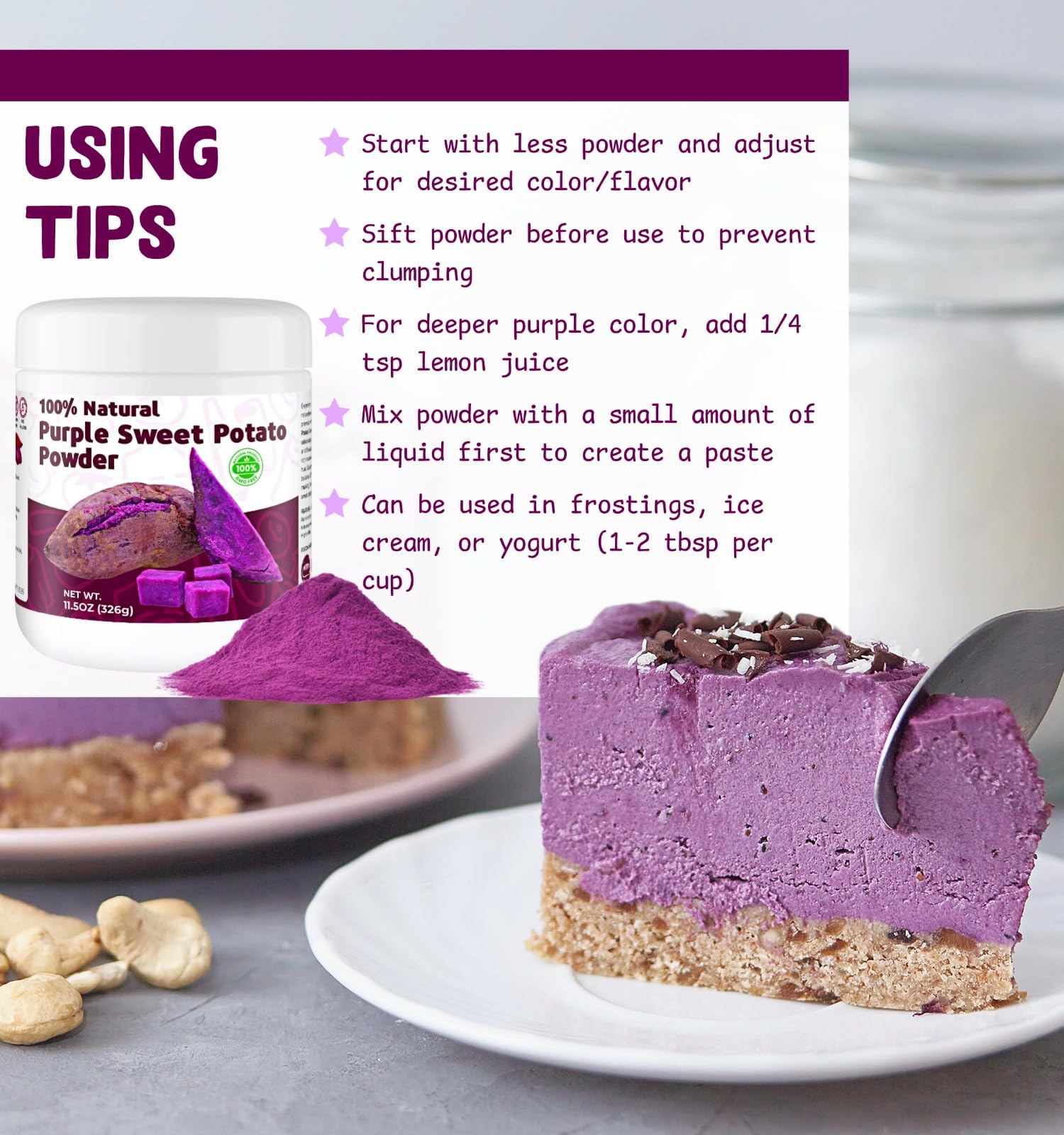 Q: What can I use Purple Sweet Potato Powder for?A: Purple Sweet Potato Powder is versatile and can be used in a variety of recipes, including smoothies, pancakes, lattes, baked goods, and desserts. Its vibrant color and smooth texture make it an excellent addition to both sweet and savory dishes.