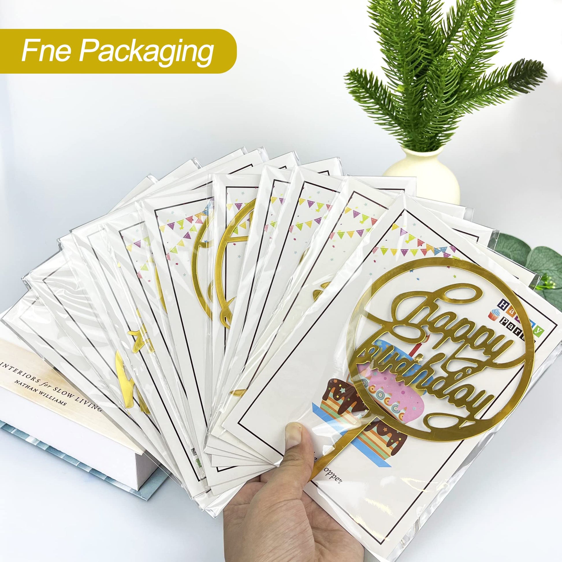 Q: What materials are the cake toppers made from?A: The cake toppers are made from high-quality acrylic, ensuring durability and a stylish appearance for your birthday celebrations.