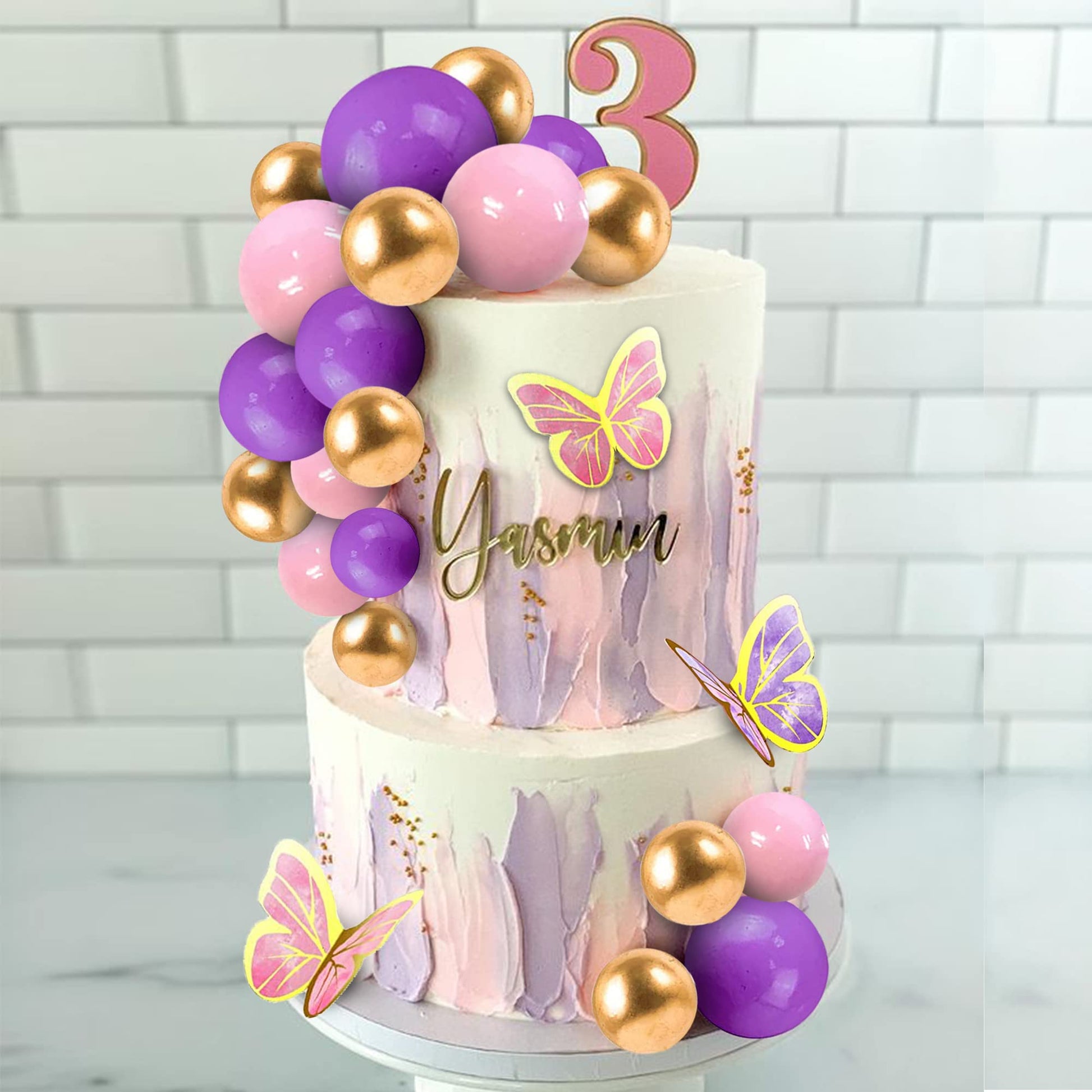 The Purple Cake Decorations Create A Happy Party Atmosphere, The Rich Contents Make Your Cake Look Different You Can Also Give It To Friends And Family They Will Be Very Excited When They Receive The Gift Specifications:The Specific Dimensions Are Shown In The Drawing Product Name: Balls Cake Topper Feature: Delicate And Cute, Durable And Premium,Safe And Effective Color: Multicolor Material: Plastic, Paper Quantity:41 Pieces Package: Bag Package Contents: 20 Reflective Butterflies, 11 Purple Balls, 9 Pink Balls, 5 Gold Balls, 1 Happy Birthday Topper, 5 Artificial Flowers Warm Notice: All Parts Of This Product Are Not Edible Contain Small Accessories, Please Keep Them Out Of The Reach Of Children Under Three Years Of Age Manual Measurement,With Small Error On Size Real Colors May Slightly Differ From The Pictures If You Have Any Suggestions Or Questions, Please Contact Us