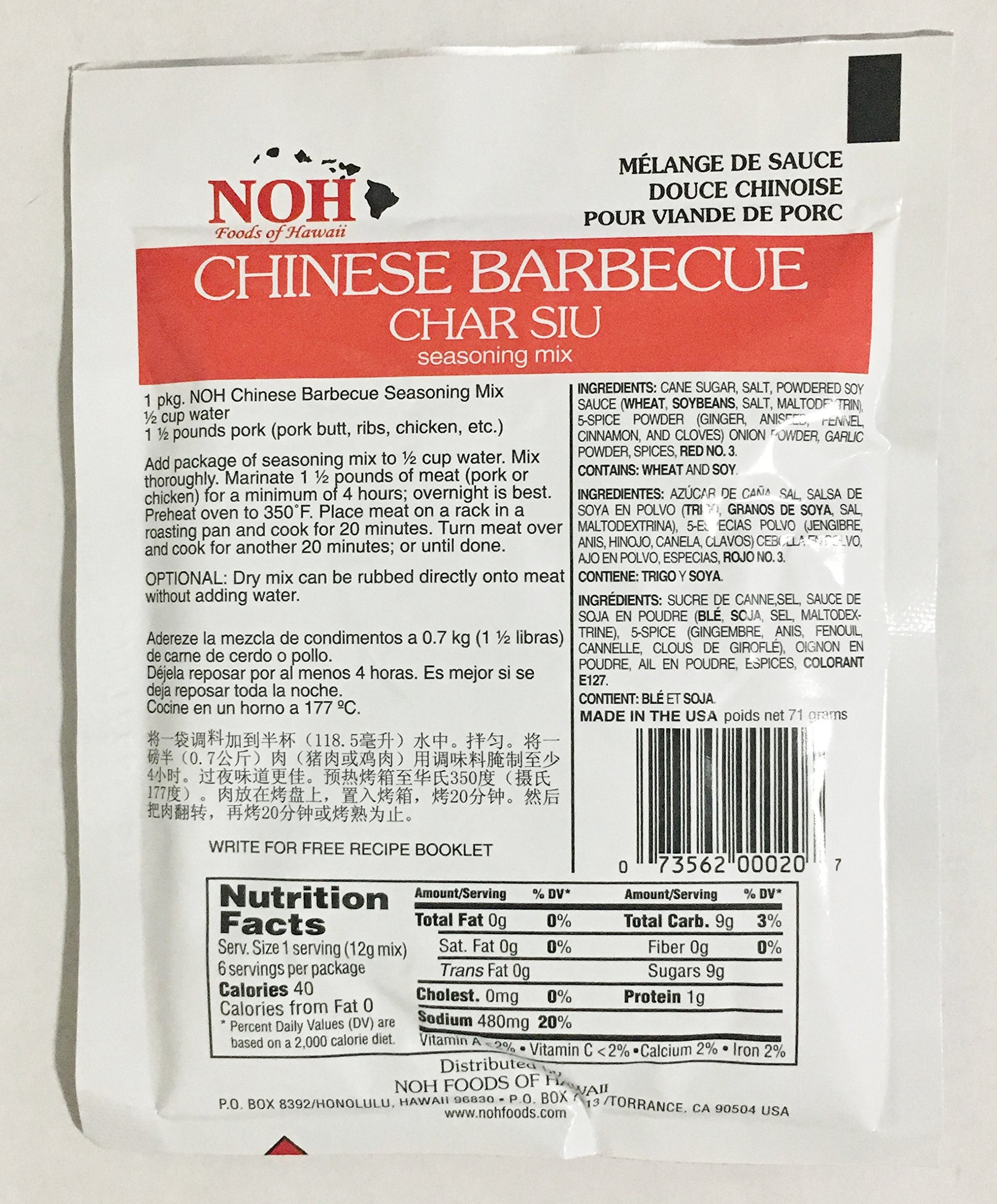 All Natural NOH Chinese Barbecue Char Siu Seasoning Mix 2.5 Ounce (4 Pack)