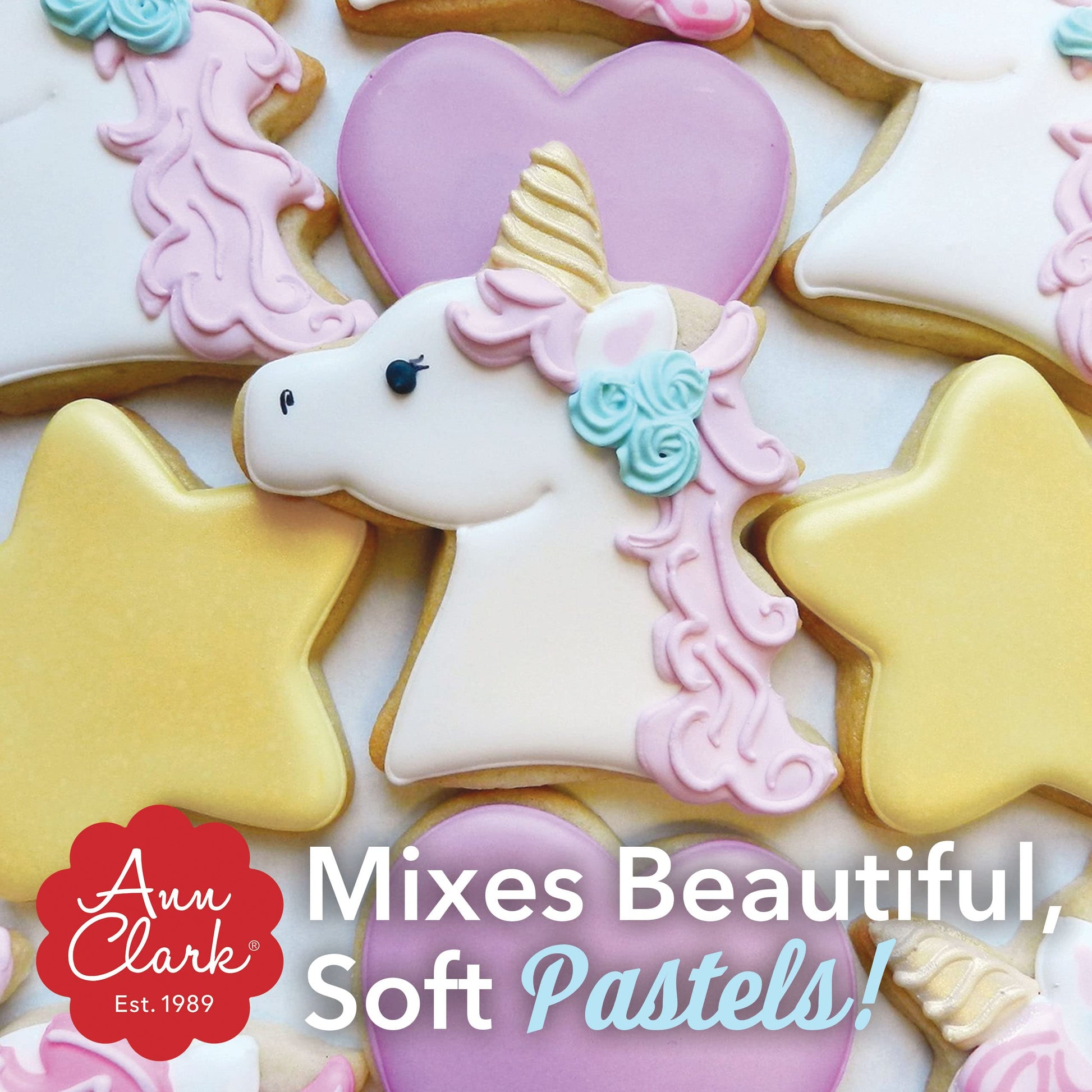- Q: What are the benefits of using Ann Clark Bright White Food Coloring Gel? A: Ann Clark Bright White Food Coloring Gel provides a bright, brilliant white color that is perfect for creating flawless wedding cakes, frosting, or cookie icing. It also allows you to blend beautiful, soft pastels when mixed with other colors, enhancing your cake and cookie decorating projects.