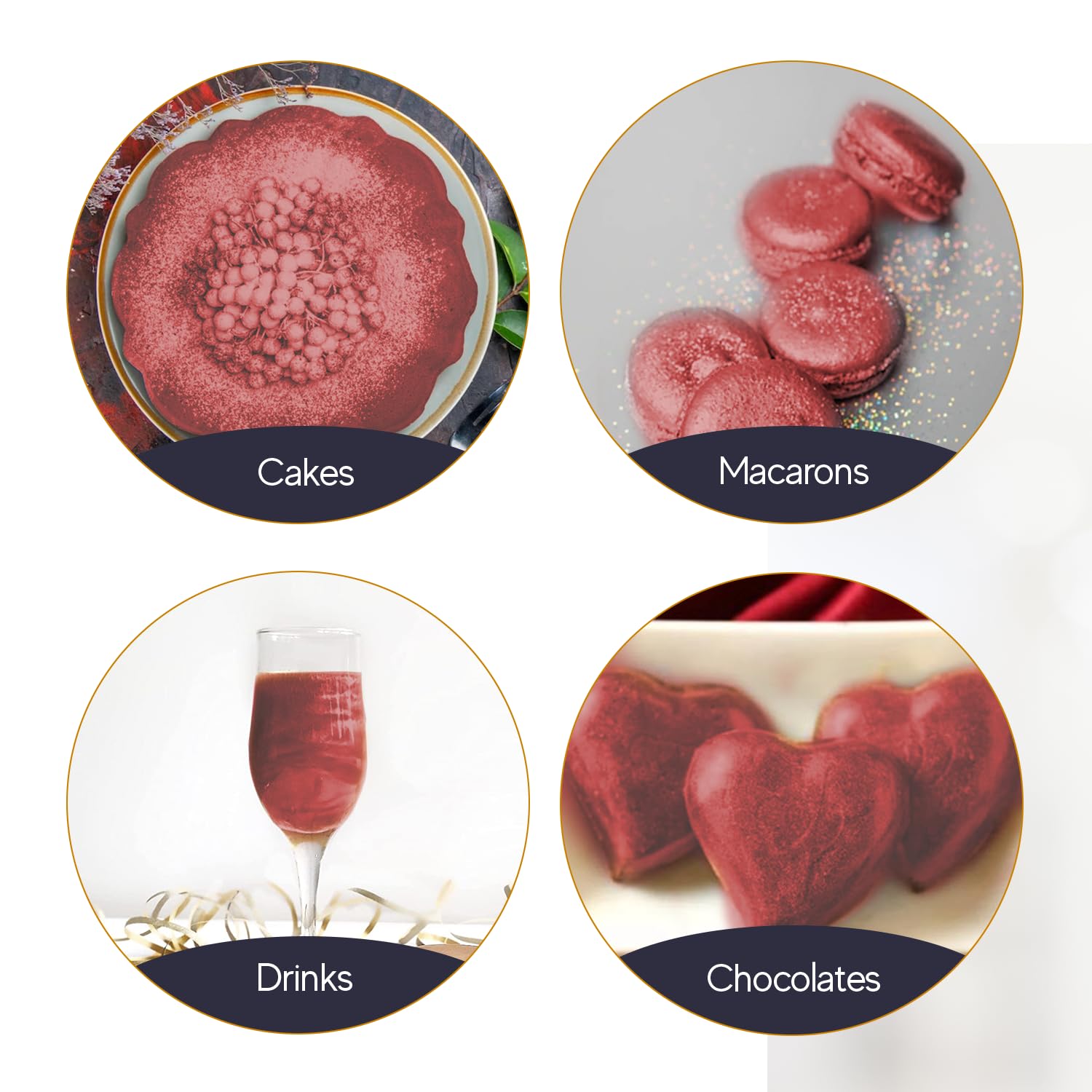 Q: What occasions is the red luster dust suitable for?A: The red luster dust is ideal for various occasions, including birthdays, weddings, holiday parties, and family gatherings. It enhances the appearance of cakes, cupcakes, and desserts for any celebration.