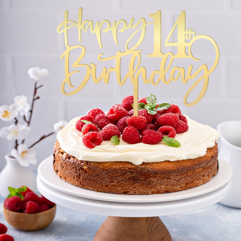 Happy 14 Th Birthday Cake Topper,Mirrored Gold Acrylic Durable Cake Topper,14Th Birthday Party Cake Decorations, Hello 14Th Years Old, Happy 14Th Years Old, 14Th Birthday, 14Th Party Decorations