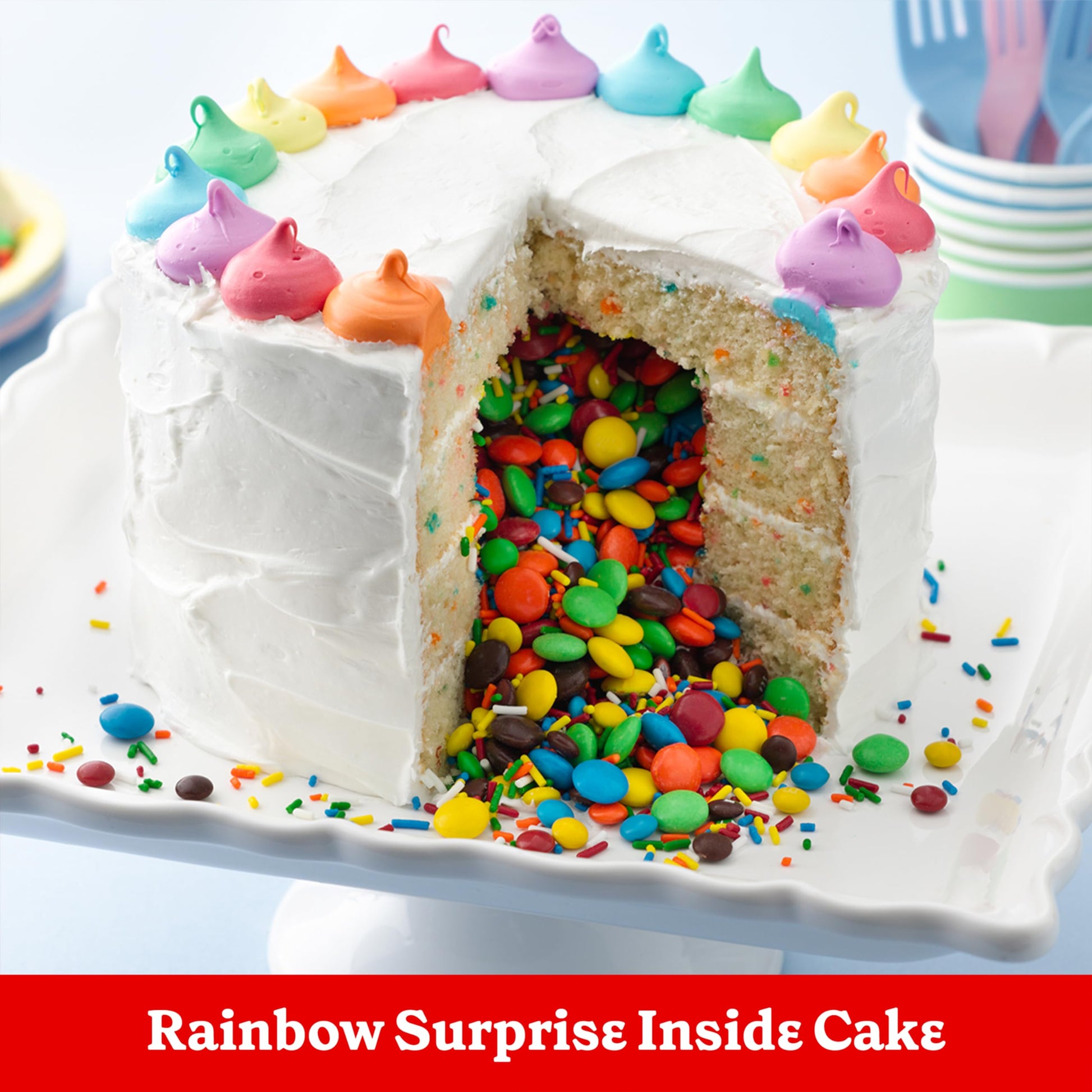 - Q: How long does it take to bake the cake using this mix? A: The baking time for the Betty Crocker Delights Super Moist Party Rainbow Chip Cake typically ranges from 28 to 33 minutes at 350°F when using a standard cake pan. Always check for doneness with a toothpick.