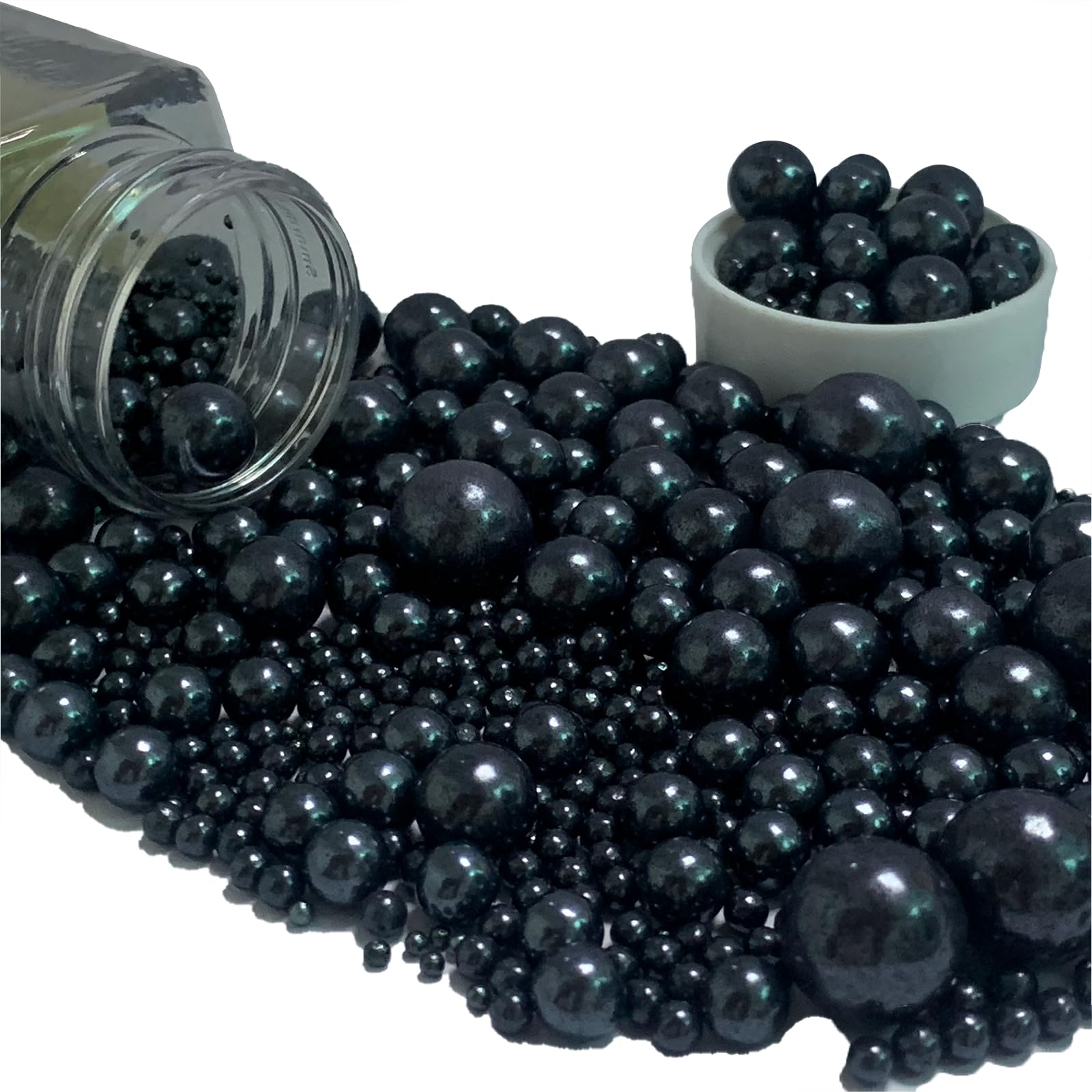 Q: How do I use these edible sugar pearls for decorating my cakes?A: To use Black Sprinkles, simply sprinkle them over your frosted cupcakes, cakes, or cookies to add a festive touch. They can also be mixed into cake batter for added decoration.