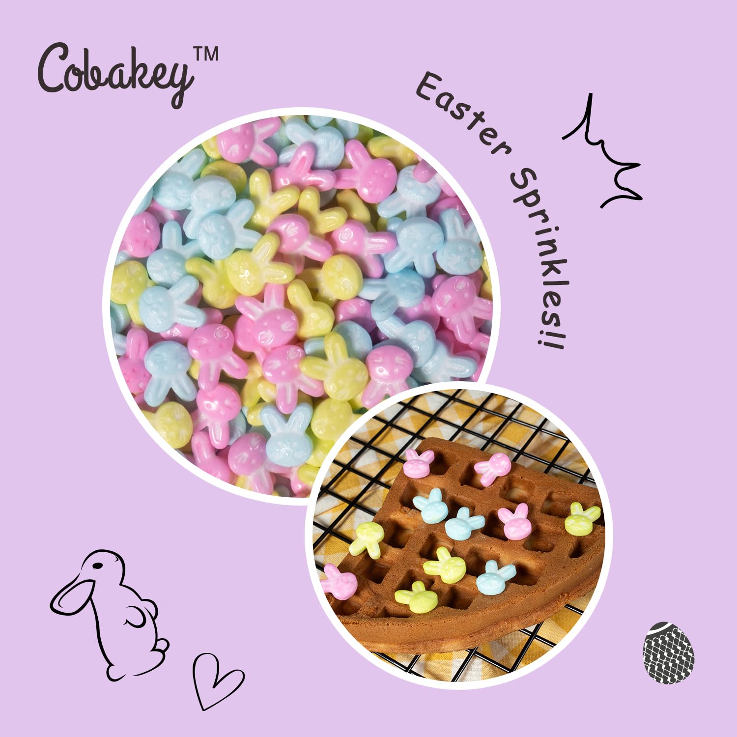 Q: What are Cobakey Easter Sprinkles made of?A: Cobakey Easter Sprinkles are made from safe ingredients, ensuring that they are edible and suitable for decorating various baked goods.