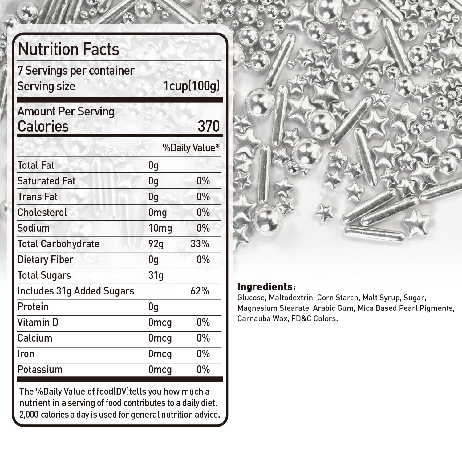 - Q: Can I chew Dazzjoy Silver Pearl Sprinkles? A: No, Dazzjoy Silver Pearl Sprinkles are hard candies that are not recommended for chewing. They are intended for decorative purposes, providing a beautiful metallic shine to your baked goods.