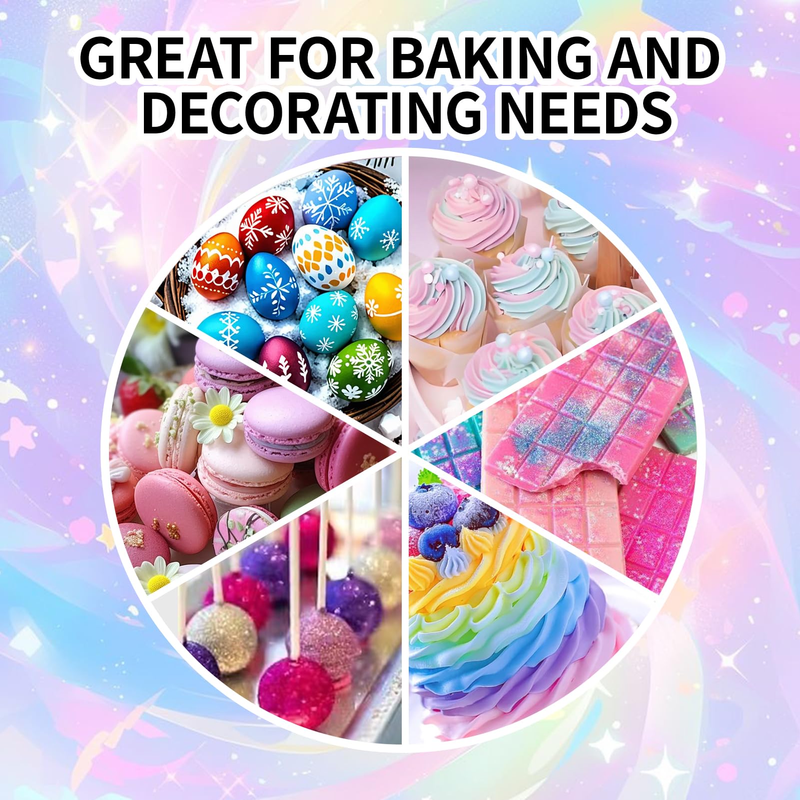 Q: Is the Edible Glitter safe for all dietary needs?A: Yes, our Edible Luster Dust is made from premium, food-grade ingredients that are vegan, non-toxic, gluten-free, dairy-free, and nut-free, making it suitable for a variety of dietary restrictions.