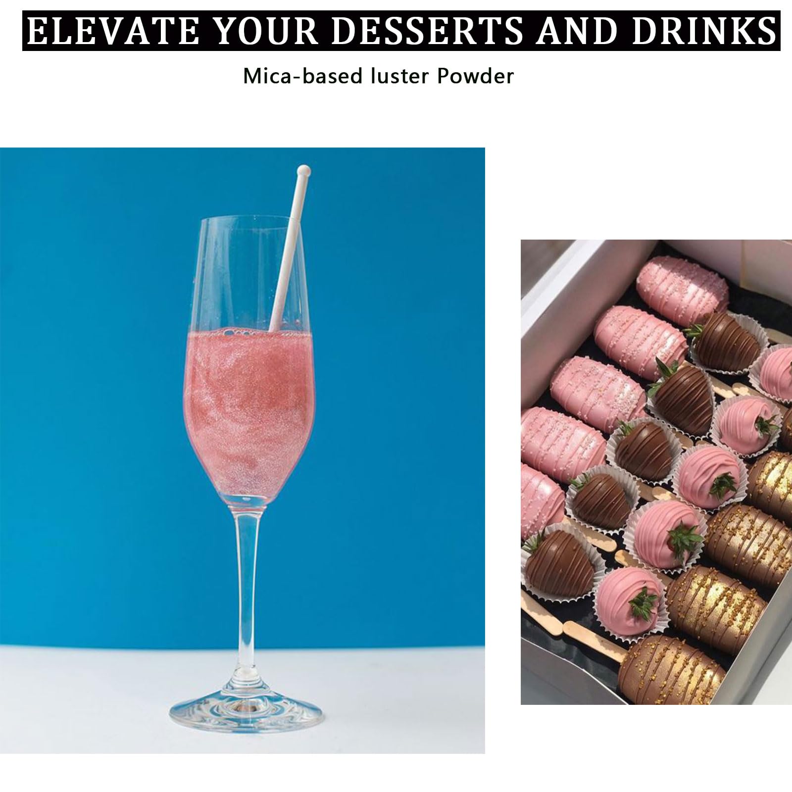 Q: Can I use this edible glitter for drinks and cocktails?A: Absolutely! This Edible Pink Luster Dust is perfect for adding a stunning shimmer to drinks and cocktails, making them look more festive and appealing for any occasion.