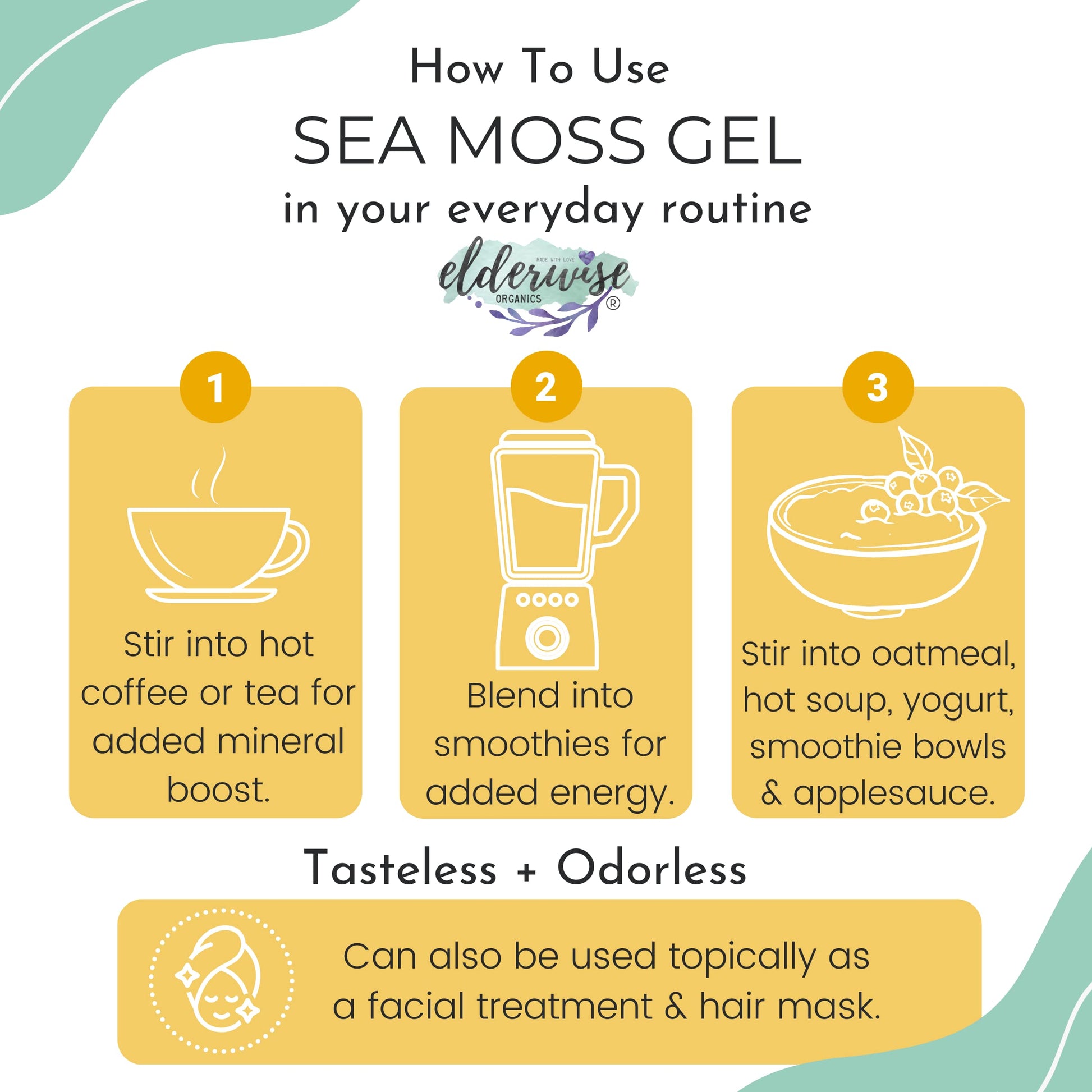 Q: How do I prepare Elderwise Raw Sea Moss for consumption?A: To prepare Elderwise Raw Sea Moss, simply wash and rinse it thoroughly, then blend it into a gel. This gel can be added to smoothies, juices, yogurts, dressings, and sauces for an easy and nutritious addition to your meals.