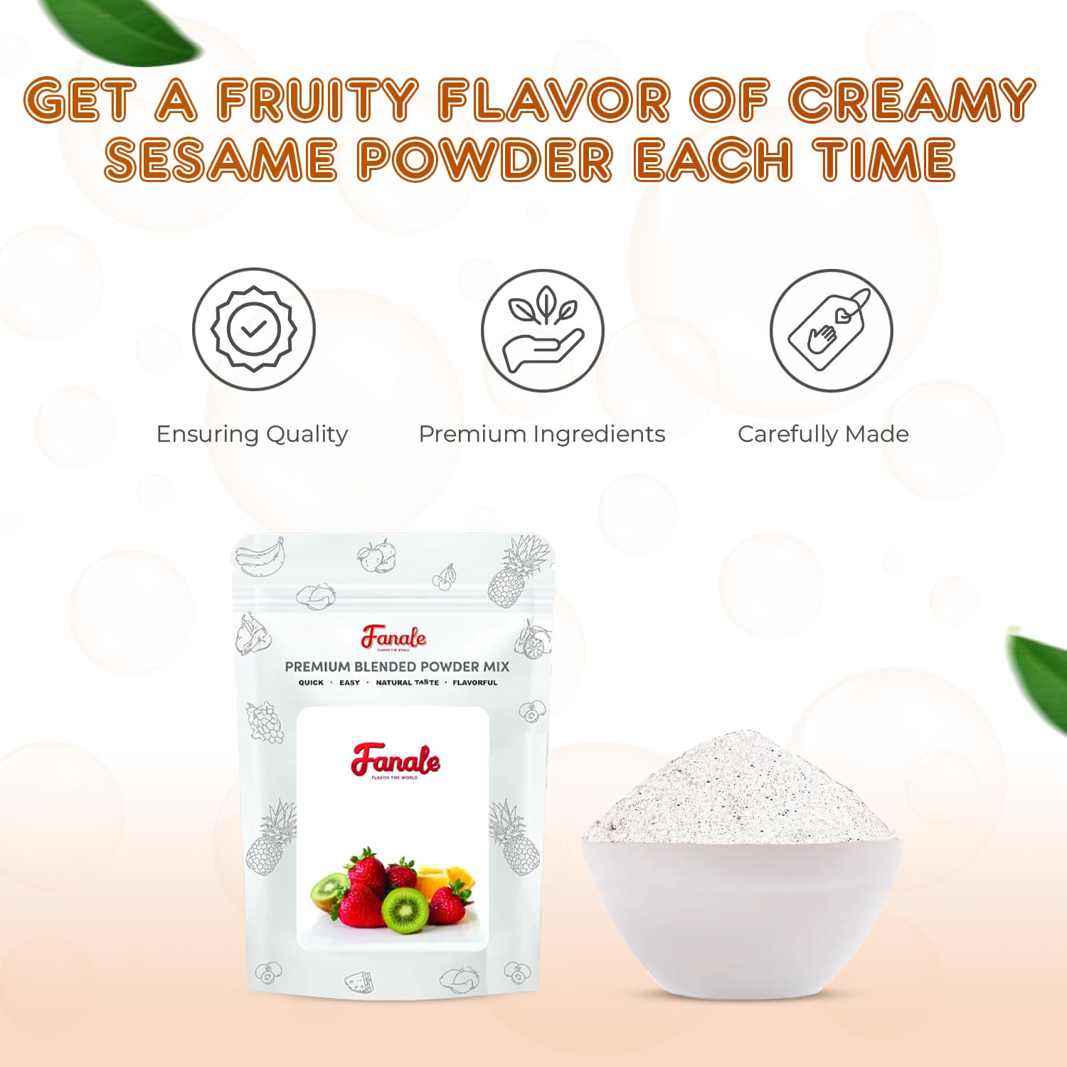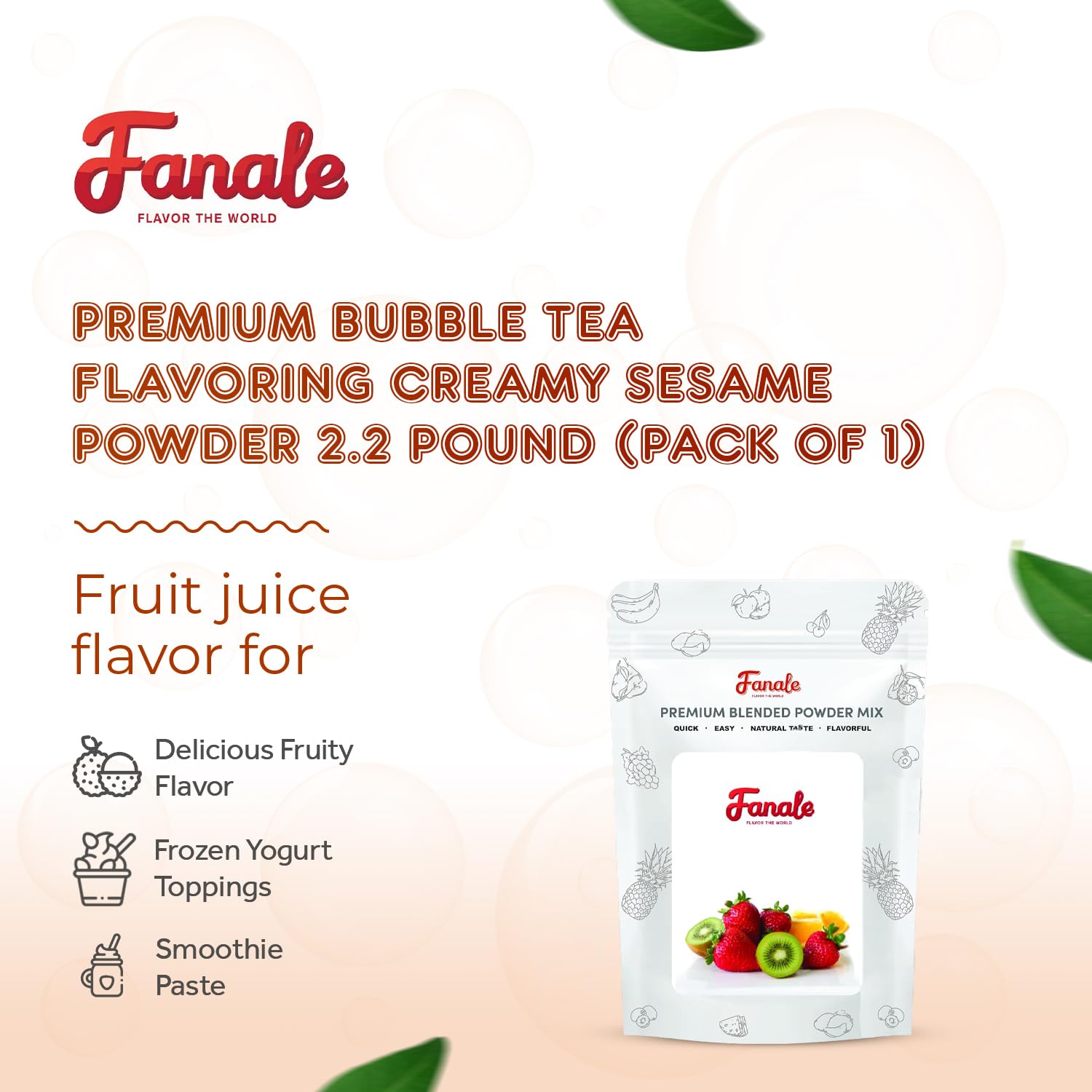 - Q: What can I use the Fanale Premium Creamy Sesame Flavor Powder for? A: The Fanale Premium Creamy Sesame Flavor Powder is a versatile ingredient perfect for enhancing a variety of recipes. You can use it in baked goods, smoothies, desserts, and drinks to add a rich, nutty flavor.