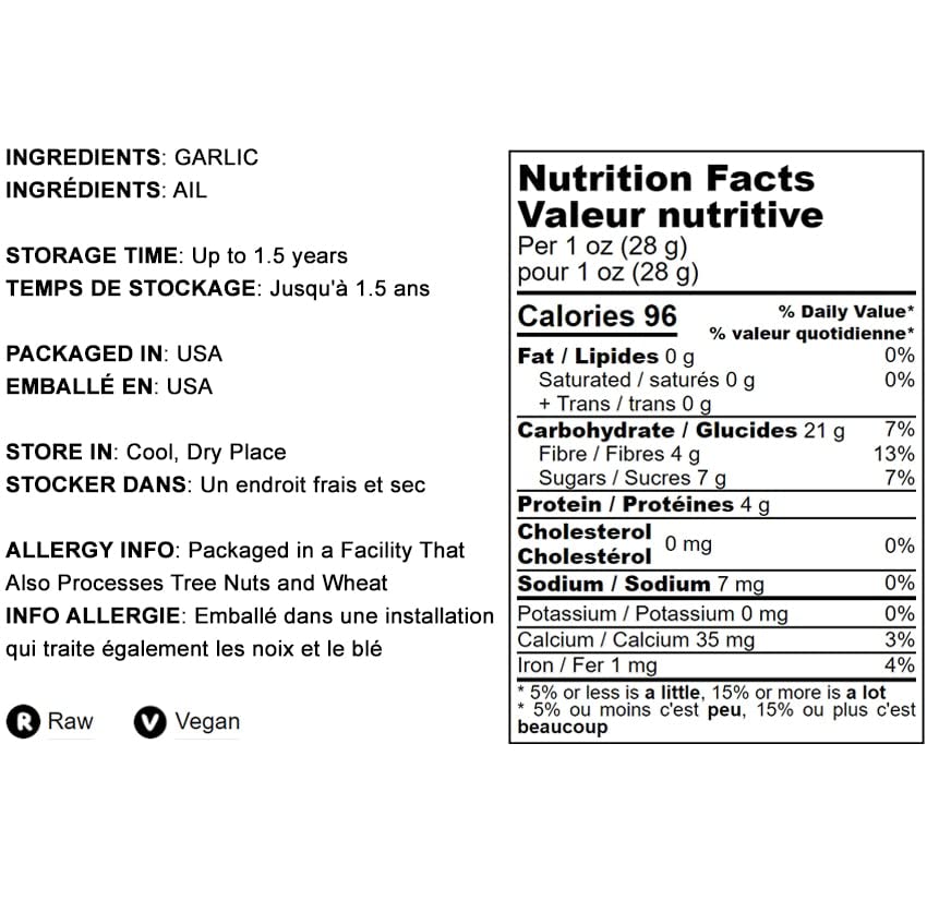 Q: Is Food to Live Minced Garlic suitable for vegan diets?A: Yes, Food to Live Minced Garlic is a raw, vegan product that is free from cholesterol and trans fats, making it an excellent addition to a vegan diet.