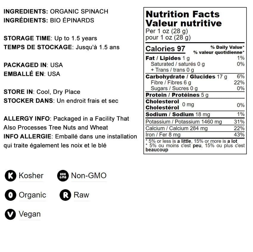 • Q: Is Organic Spinach Powder suitable for vegans and those with dietary restrictions? A: Yes, Organic Spinach Powder is vegan, non-GMO, and kosher, making it suitable for a variety of dietary preferences and restrictions. It does not contain any animal products and is a great plant-based source of nutrients.